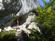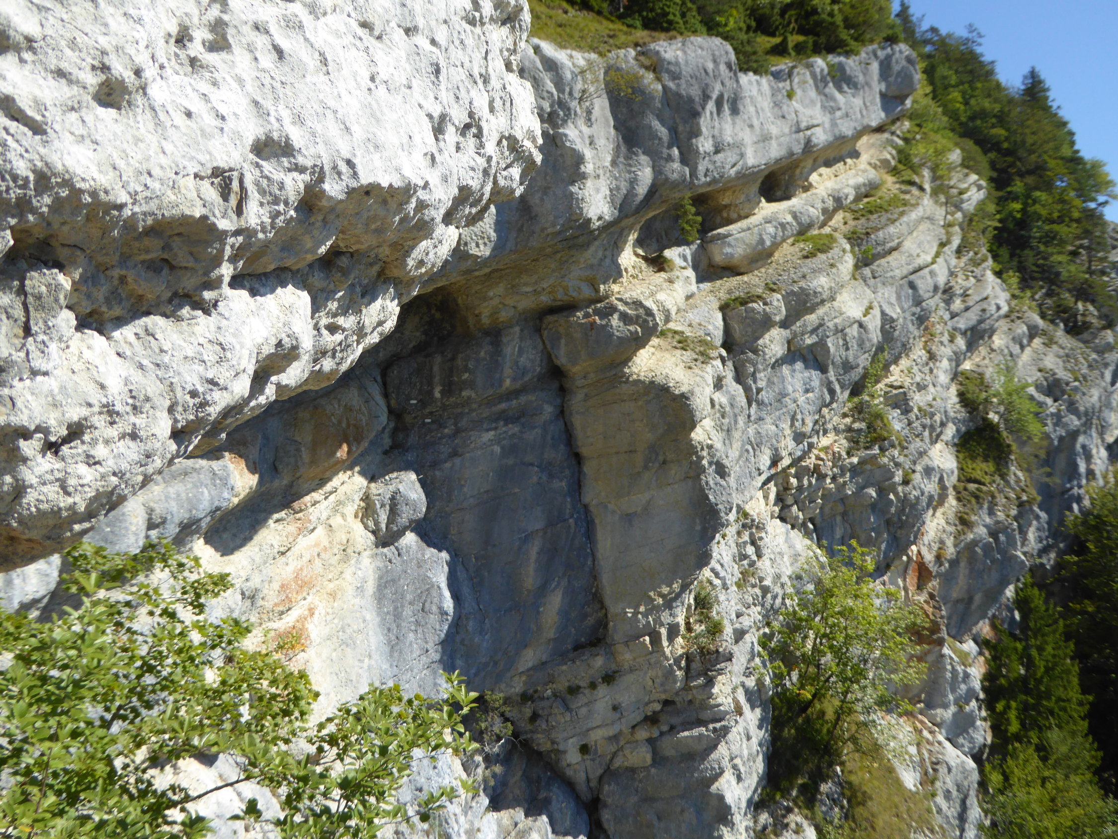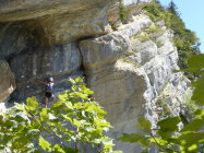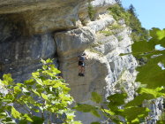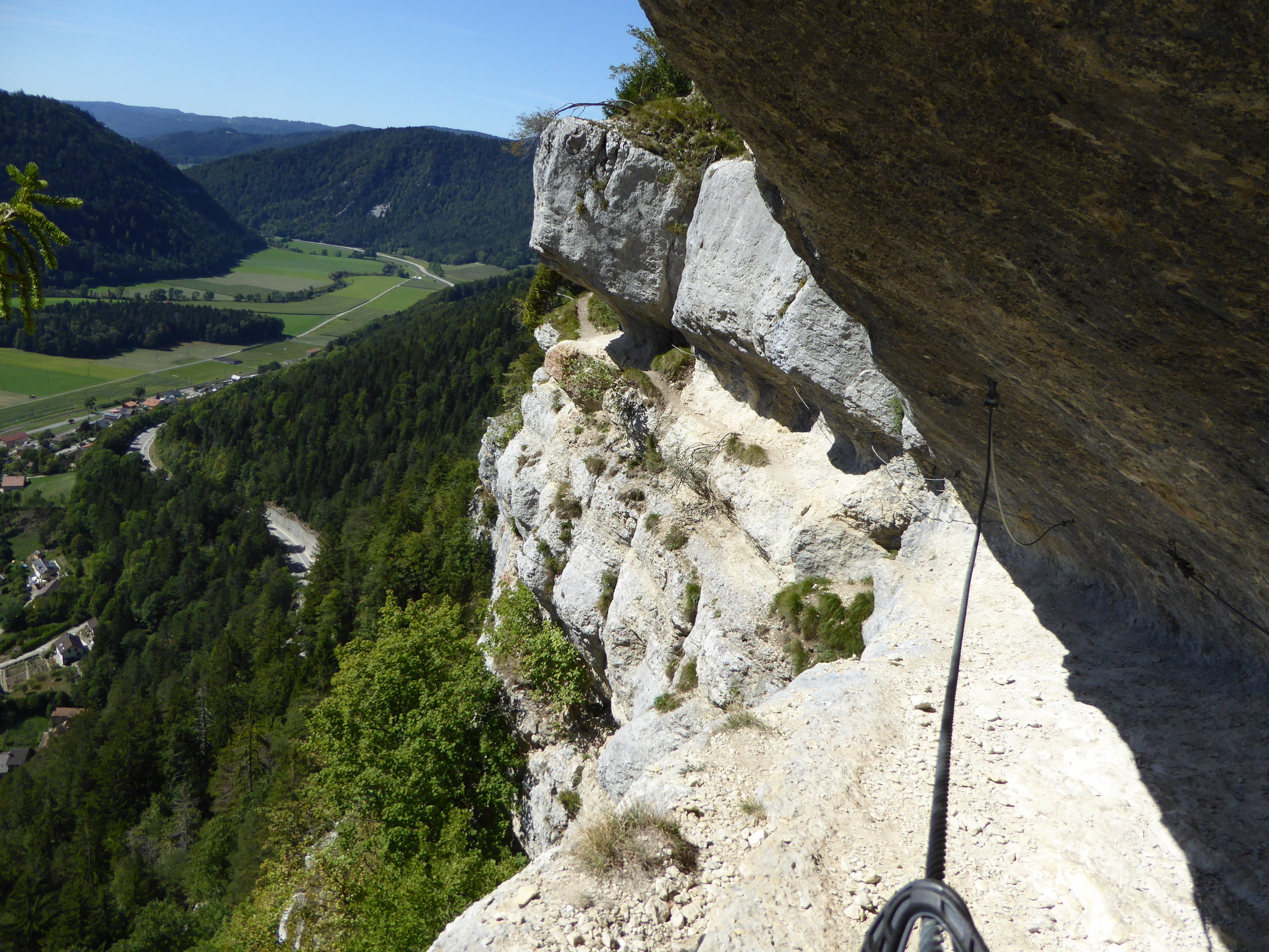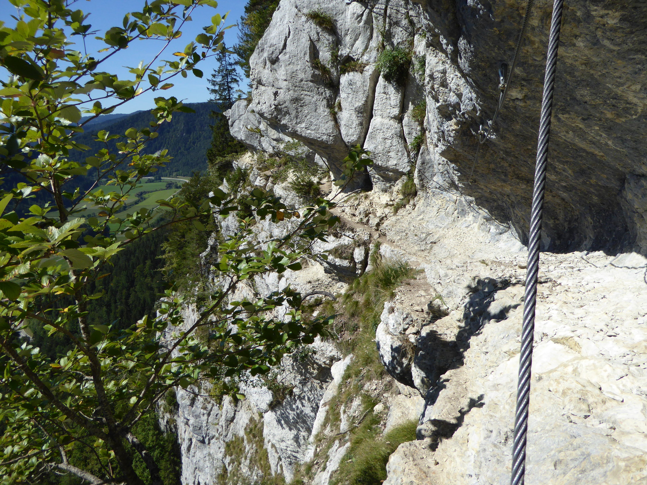 Schöne Halbtagestour mit Ausklang im Restaurant Haute-de-la-Cote. Auf natürlichen Bändern quert die Route mit durchweg luftigen Passagen den Felsriegel hoch über Noiraigue und dem Val de Travers. Die Kletterroute ist benannt nach Tichodroma muraria (Mauerläufer), der in diesen Felsen oberhalb Noiraigue nistet. Die Route ist deswegen während der Brutzeit gesperrt und erst ab dem 1. August offen. Parkplätze gibts auch noch im Wald rechts der Strasse unterhalb der Haarnadelkurve nach links kurz vor dem Gasthof. Bei dieser Wärme sind Kletterhandschuhe auf diesem Steig von Vorteil. Bei Nässe besser nicht begehen. Weitere Tourenmöglichkeiten unterhalb der Route: Areuseschlucht (Gorge de l'Areuse), und gegenüber: der gigantische Felsriegel des Creux du Van mit Steinböcken.