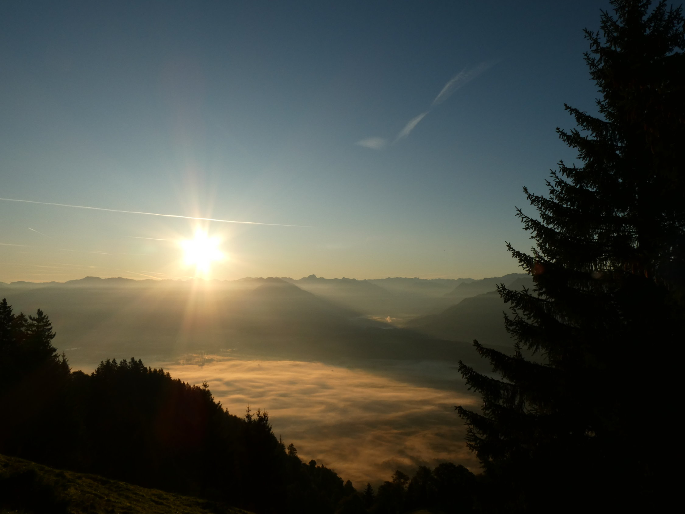 Tourstart noch im Dunkeln, um ca. 6.10 bei 12° und wolkenlosem Himmel. Im Rheintal bildeten sich über Nacht einige Bodennebelfelder.