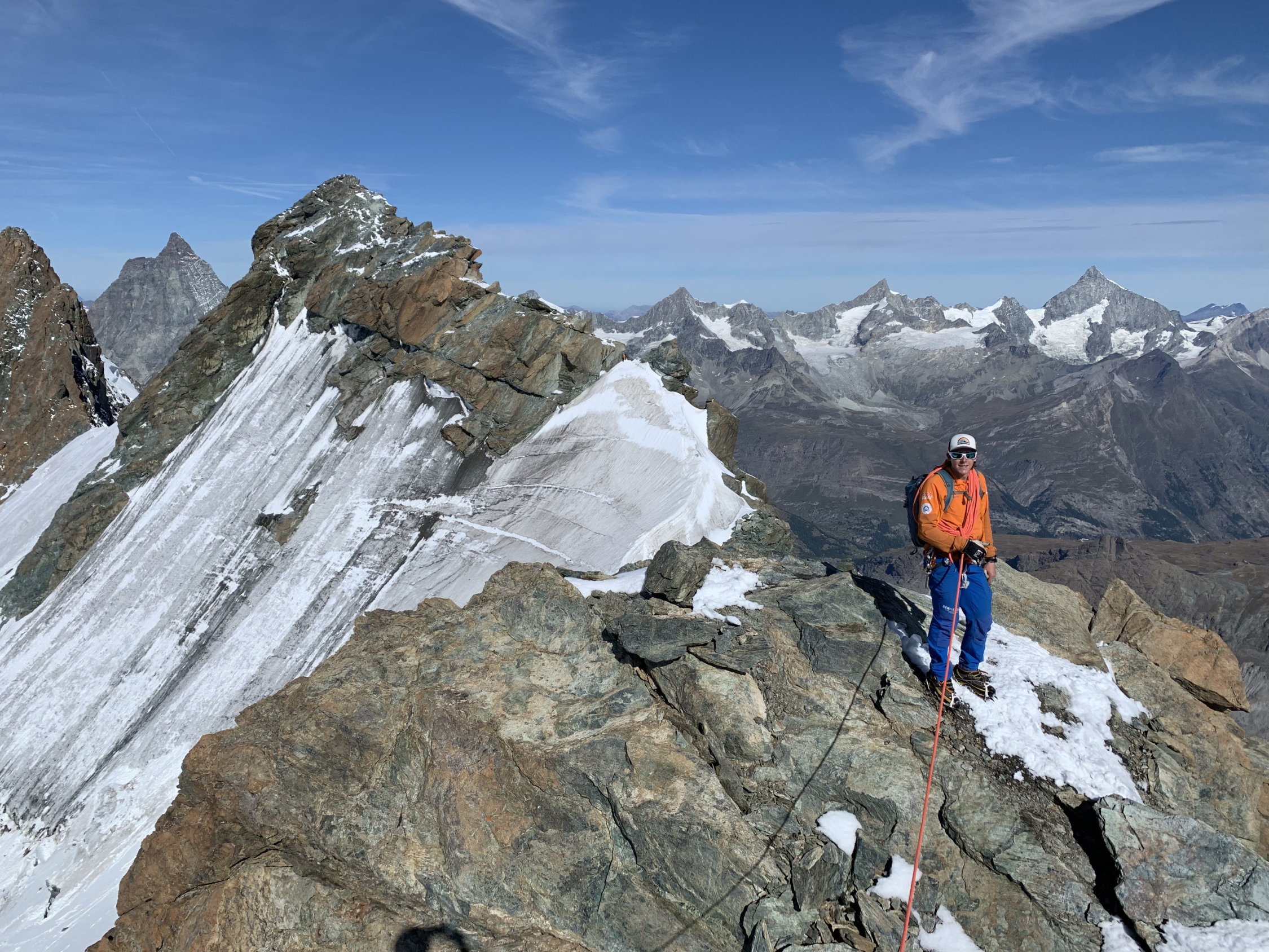 Wunderbare kurze Tour jetzt mit nur ein paar Seilschaften am Grat. Gletscher gut gefroren und wir hatten vom/bis Klein Matterhorn etwa 3,5 Stunden