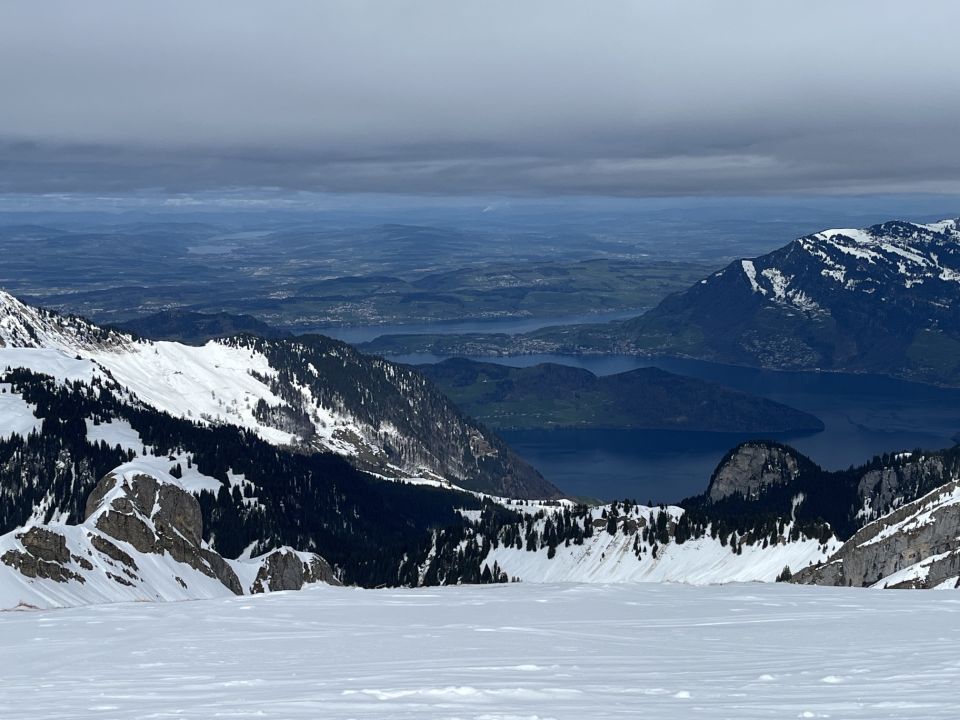 Abfahrt um 13 Uhr bei klebrigem Nassschnee, aber doch recht gut fahrbar, auch wenn man kaum auf Tempo kommt.