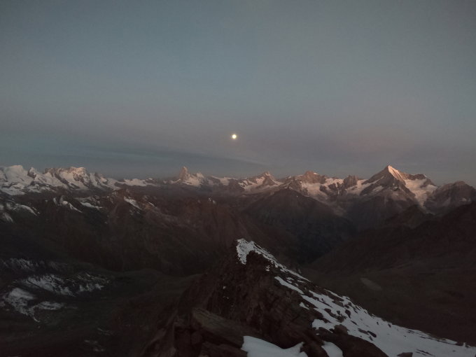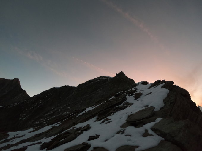 Wir sind nach vier Uhr von der Hütte los und es wurde früh genug hell, um Licht in den Kletterpassagen zu haben.