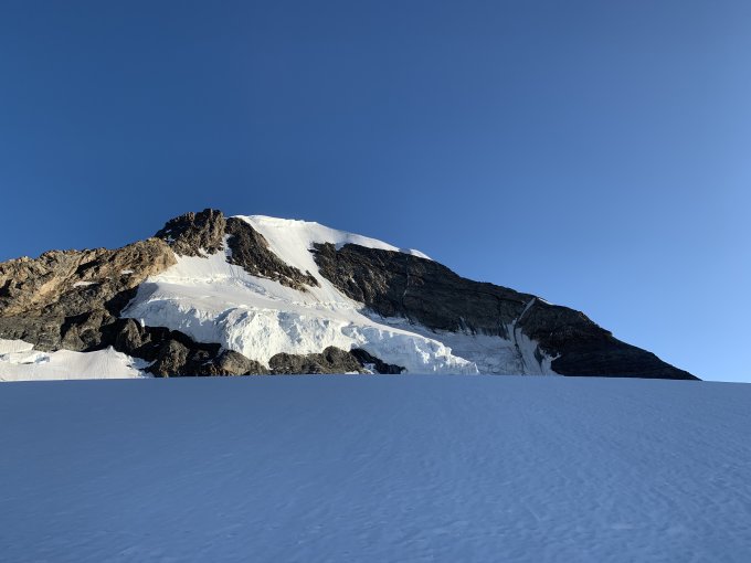 Am Südostgrat braucht man bis zum Firngrat aktuell keine Steigeisen. Die Randkluft am Einstieg kann aktuell auch gut umgehen. Der Firngrat selbst ist aktuell extrem Schmal, und teilweise schon leicht eisig .