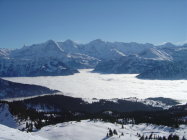 Leichter Aufstieg vom Skilift Waldegg mit herrlichem Ausblick auf die Berner Oberländer Berge.