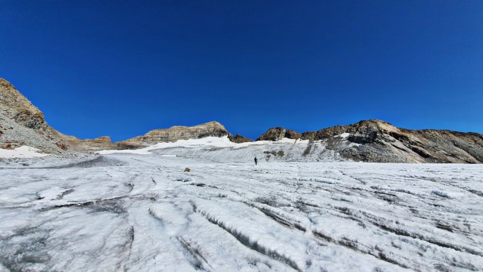 Das Stampflkees sieht zwar harmlos aus, hat aber durchaus recht große Spalten im oberen Bereich .
