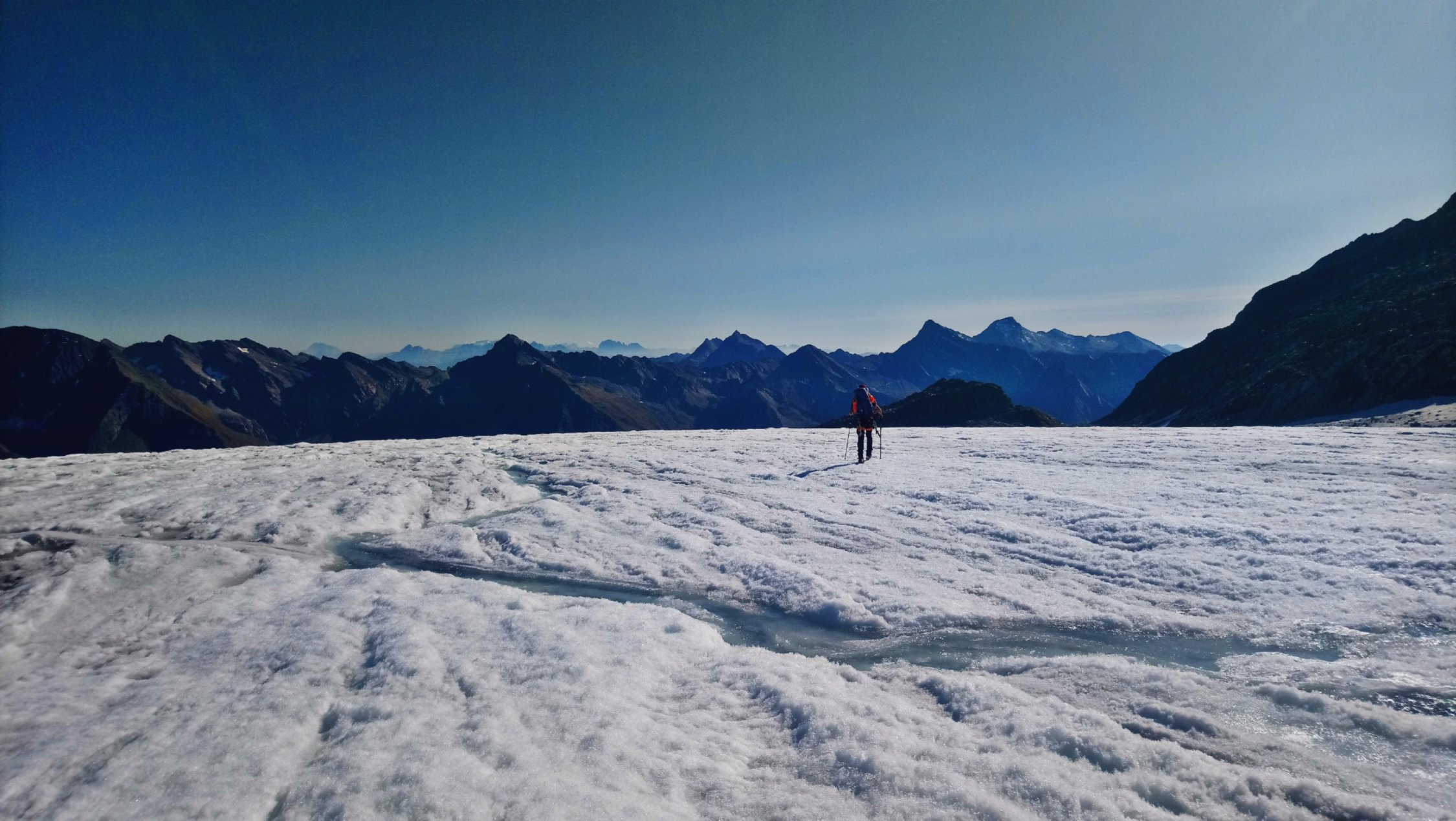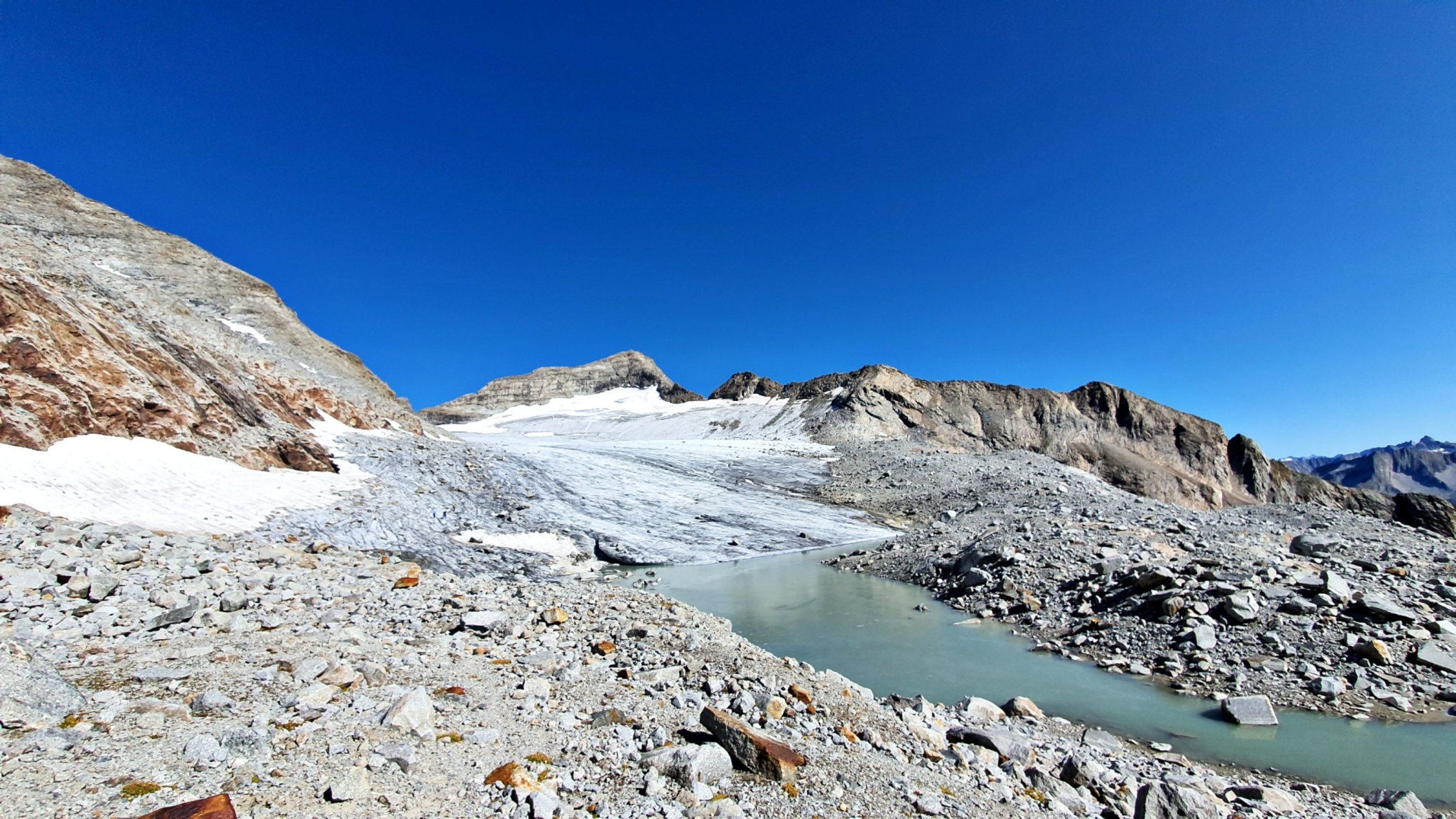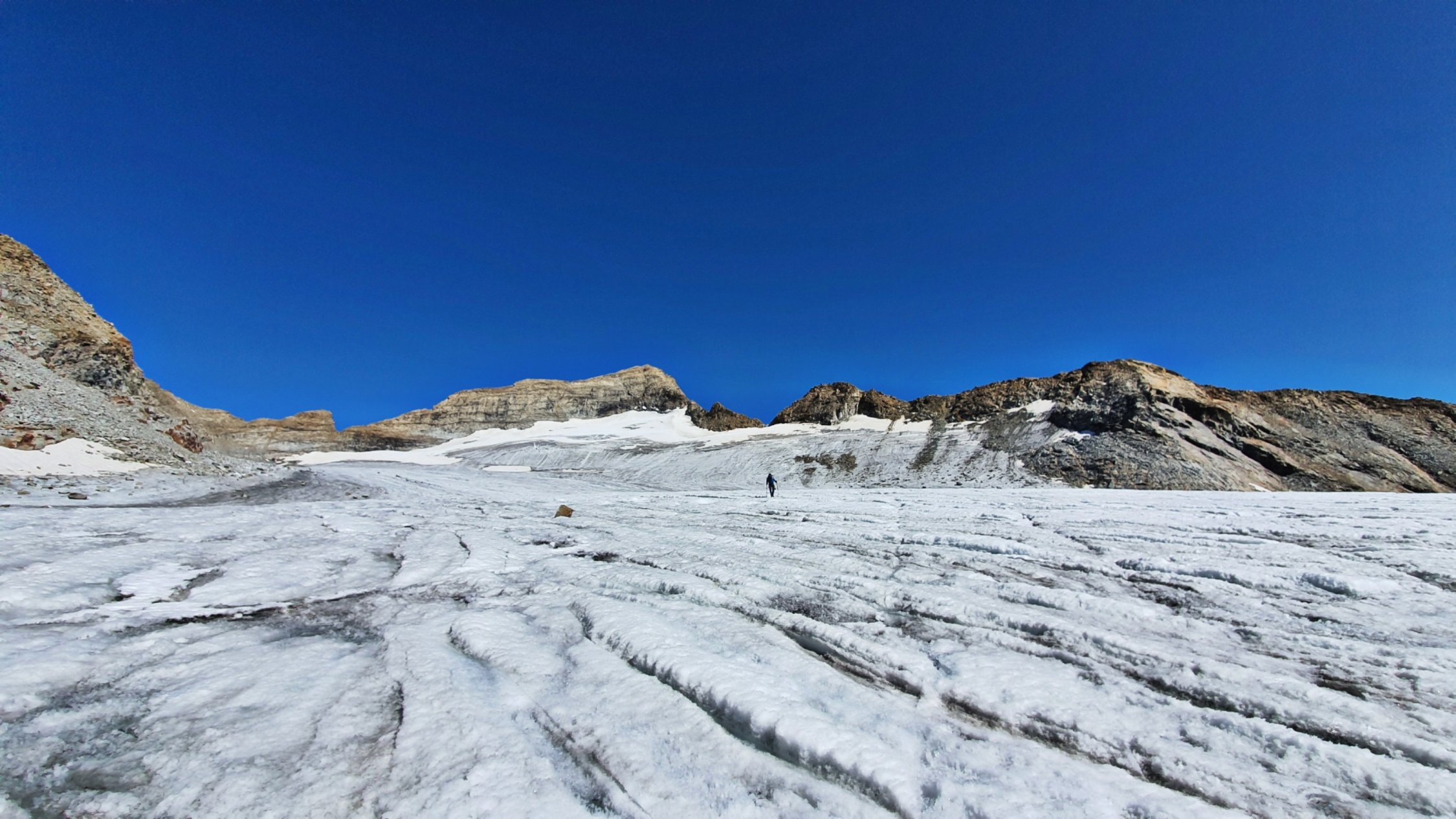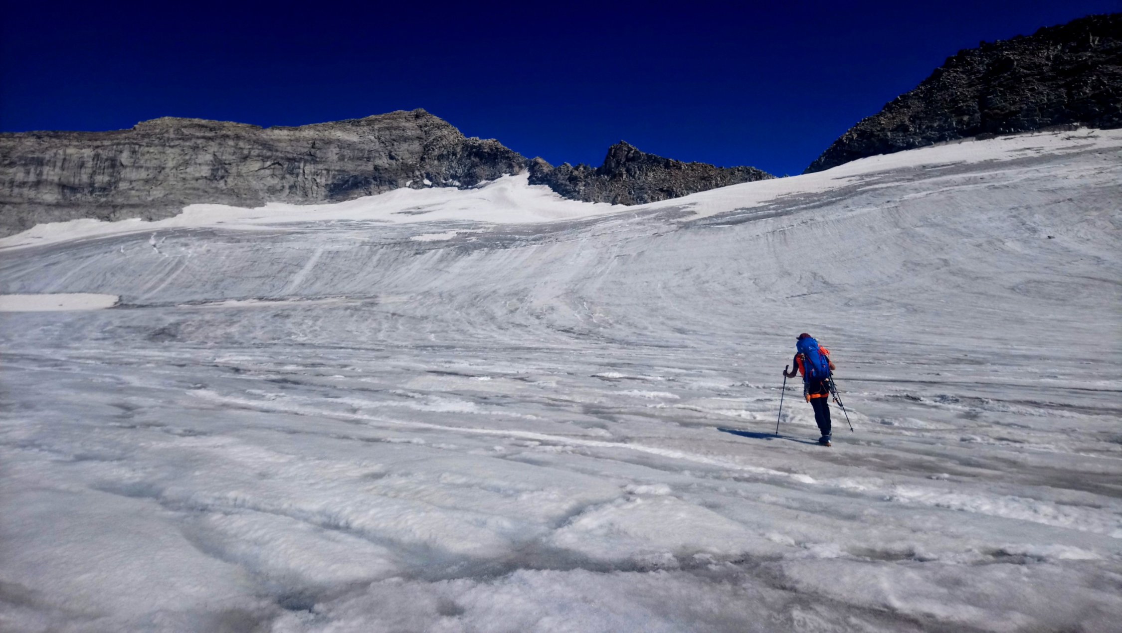 Am Stampflkees sind ein paar Schnee Brücken zum Überwinden. Diese wirken aber zum Teil noch recht stabil. Der Übergang vom Gletscher zum Südgrat gestaltet sich als schwierig da hier ein Felssturz war und nun eine ziemlich glatte und zum Teil Griff arme Fels Platte zum Überwinden ist. Der Südgrat selbst ist aktuell Schneefrei .