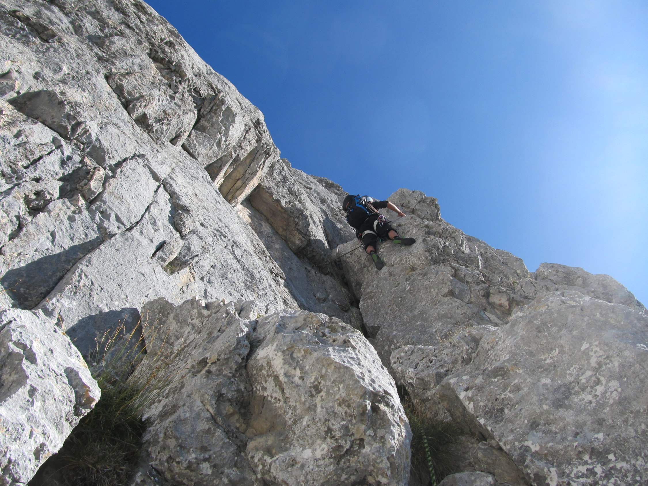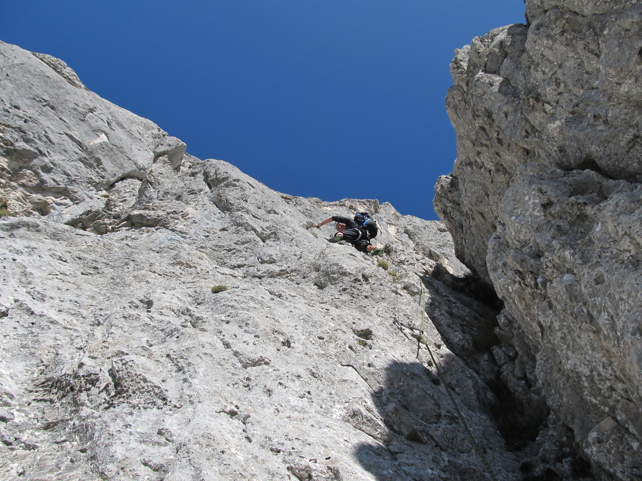 Steinschlag bei vorauskletternden Seilschaften kann auf dieser Route vorkommen.