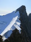 Die kurze Kletterei beim Rück- bzw. Weiterweg auf den Vorgipfel des Nadelhorns führt durch teils brüchigen Fels.