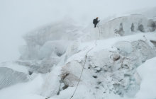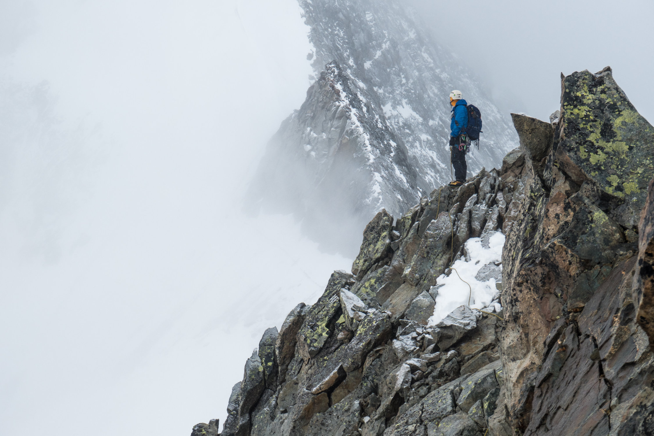 Am Felsgrat zum Piz Bernina Eisüberzug, aber trotzdem gut kletterbar.