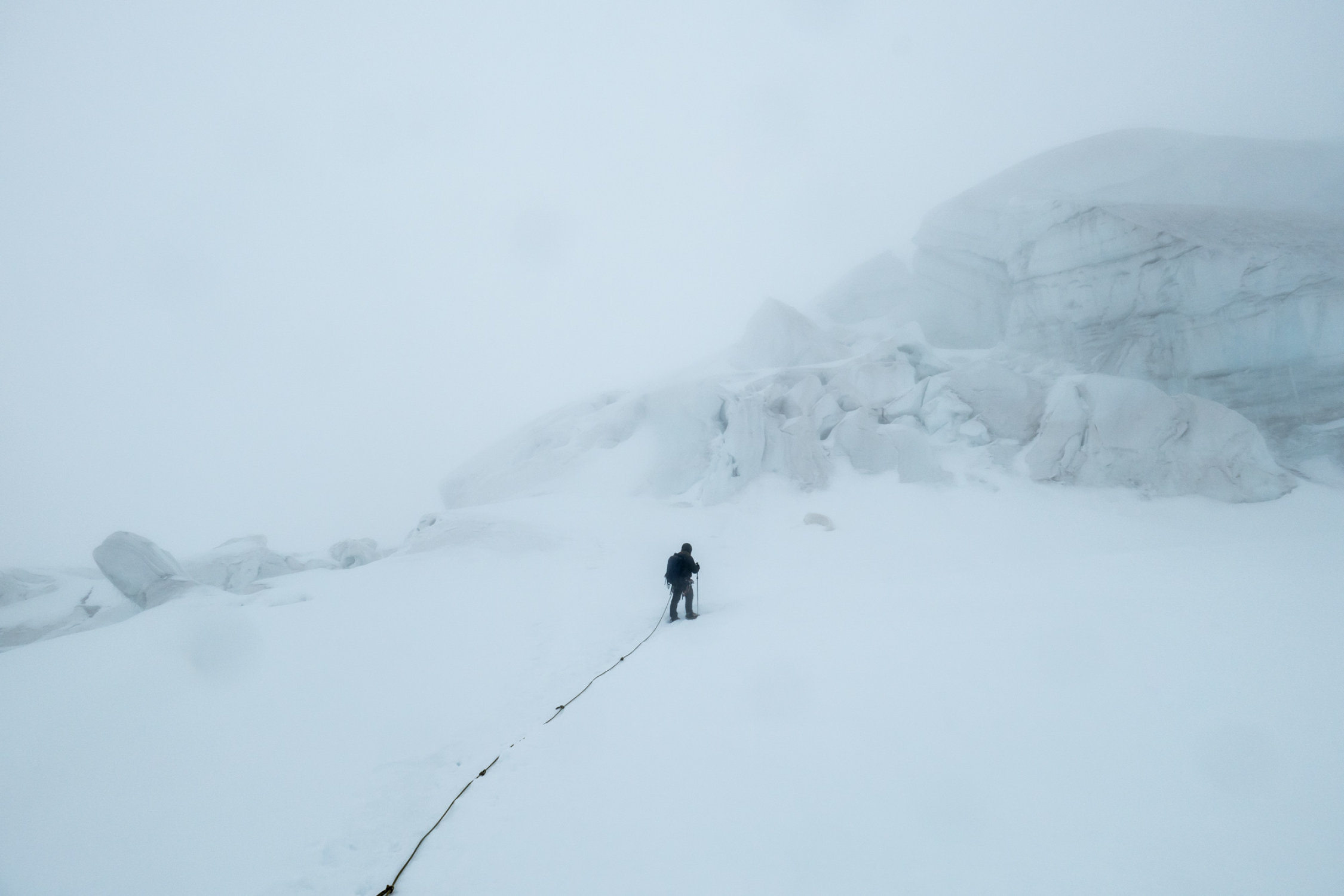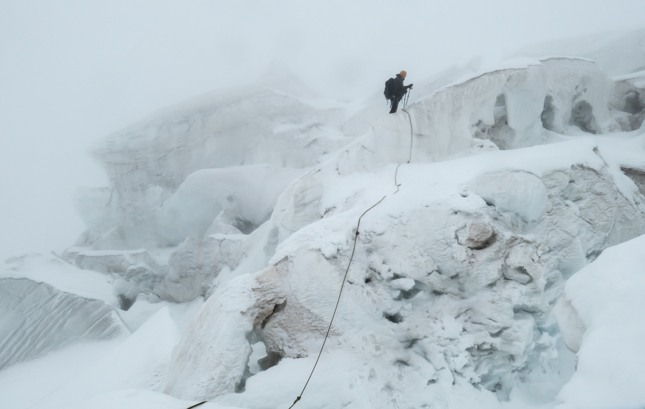 Größtenteils Trittfirn am Firngrat, stellenweise schaute schon wieder das Eis hervor, war aber noch gut zu steigen.