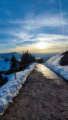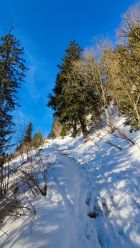 Ab Seebodenalp durchgehend Schnee, bis kurz nach Holderen Sumpf, danach kompakt, pulverige Spur. Ab Stafel Weg schneefrei.