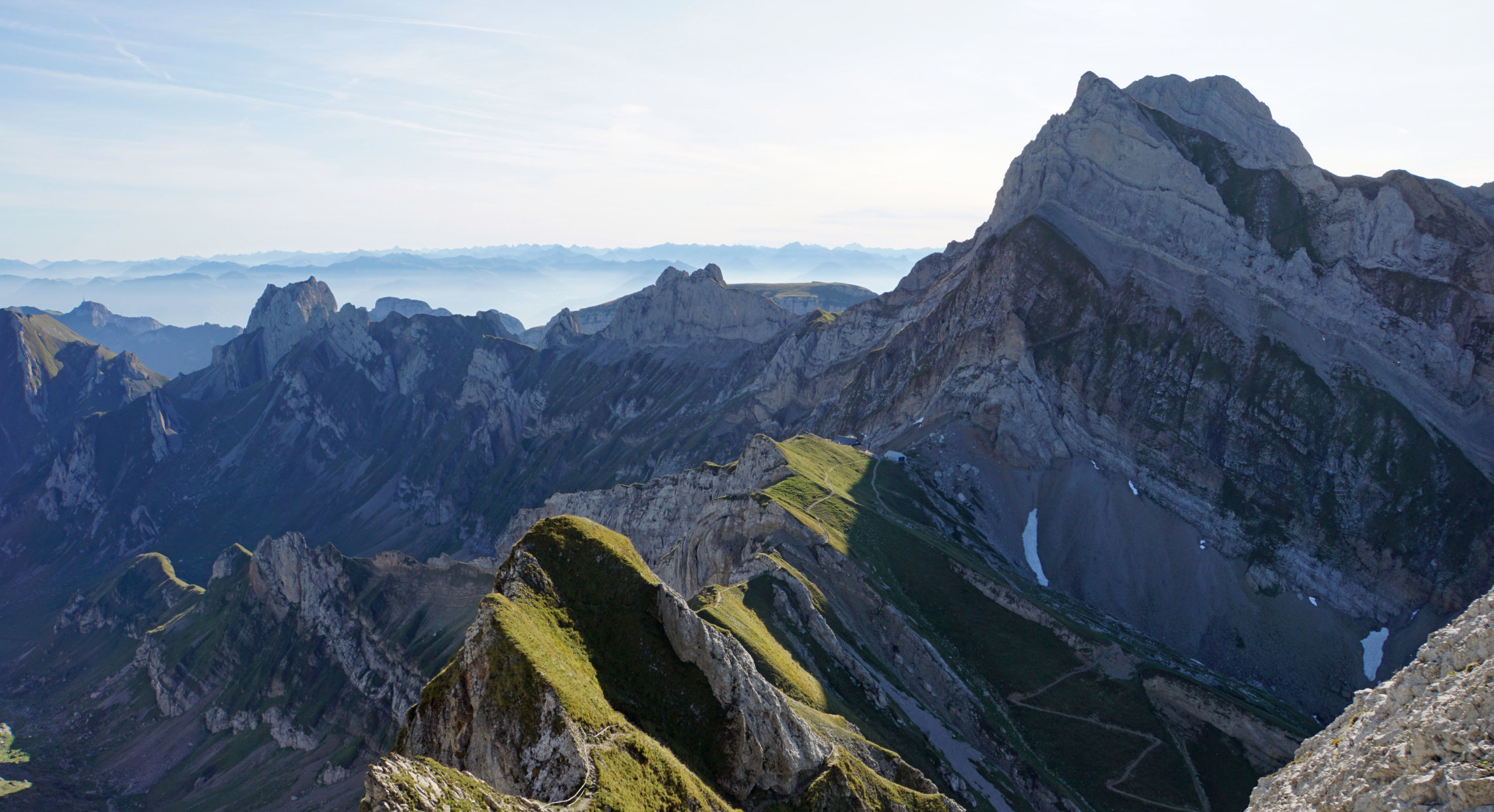 Lisengrat von der Rotsteinpasshütte Von der Hütte den gut markierten und gesicherten Weg folgen. Einige steilere Aufschwünge wechseln ab mit kurze Abstiege. Dann über den Chalbersäntis zum Vorgipfel. Nochmals einen kurzen Abstieg zur Scharte unter dem Gipfel. Hier kann man entweder direkt zum Gipfel oder zum Gasthaus Alter Säntis gehen.