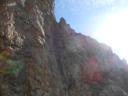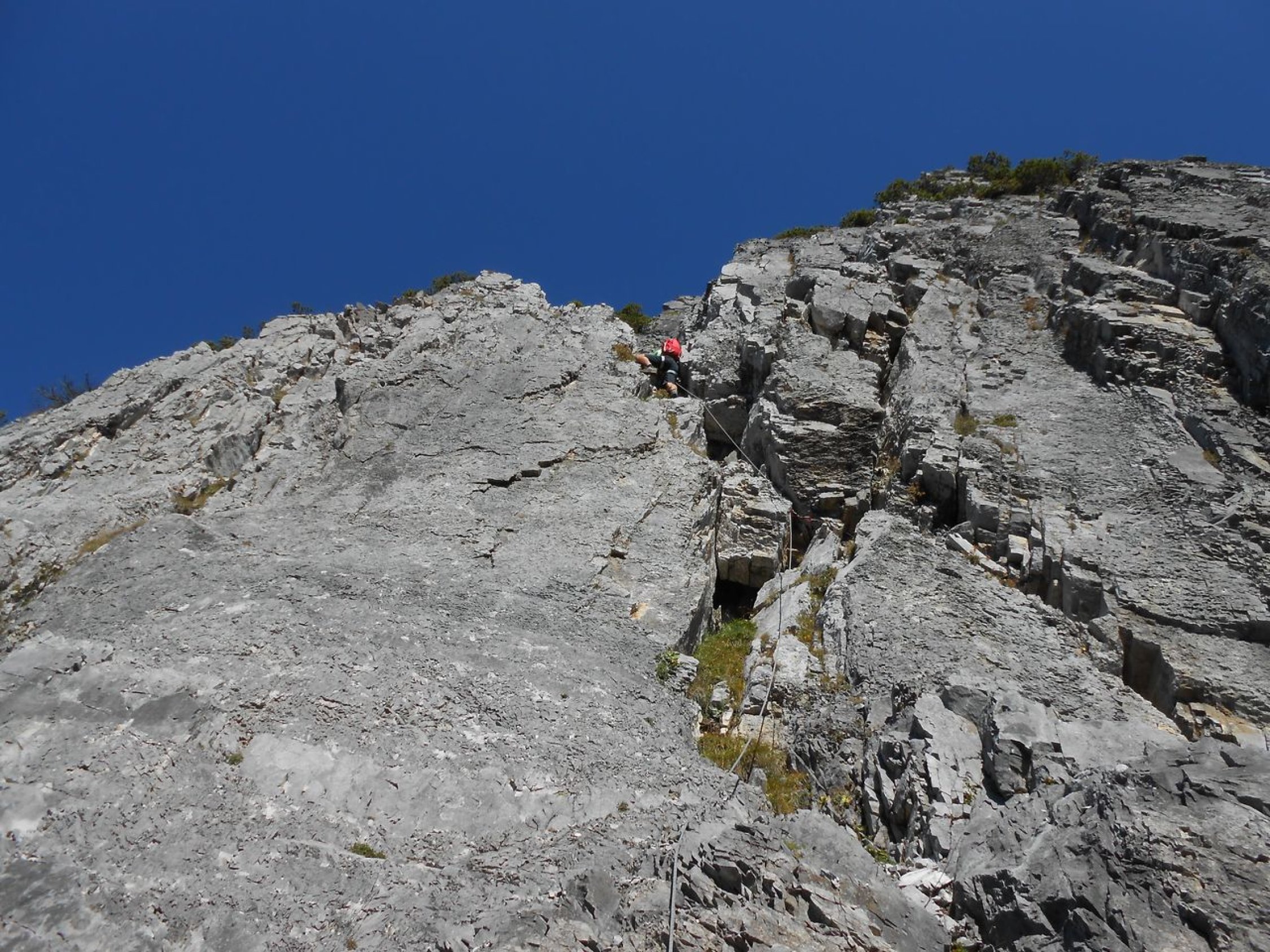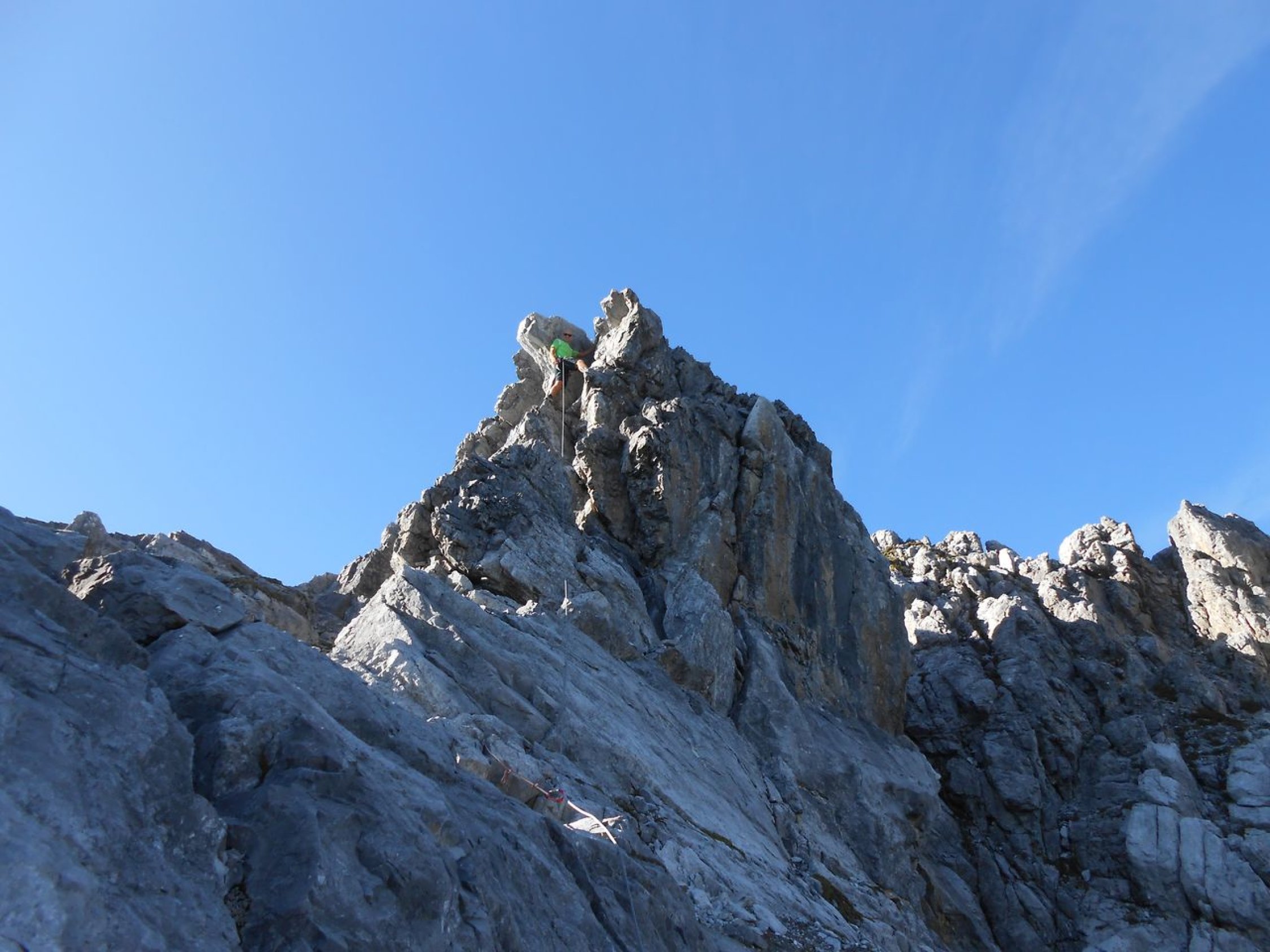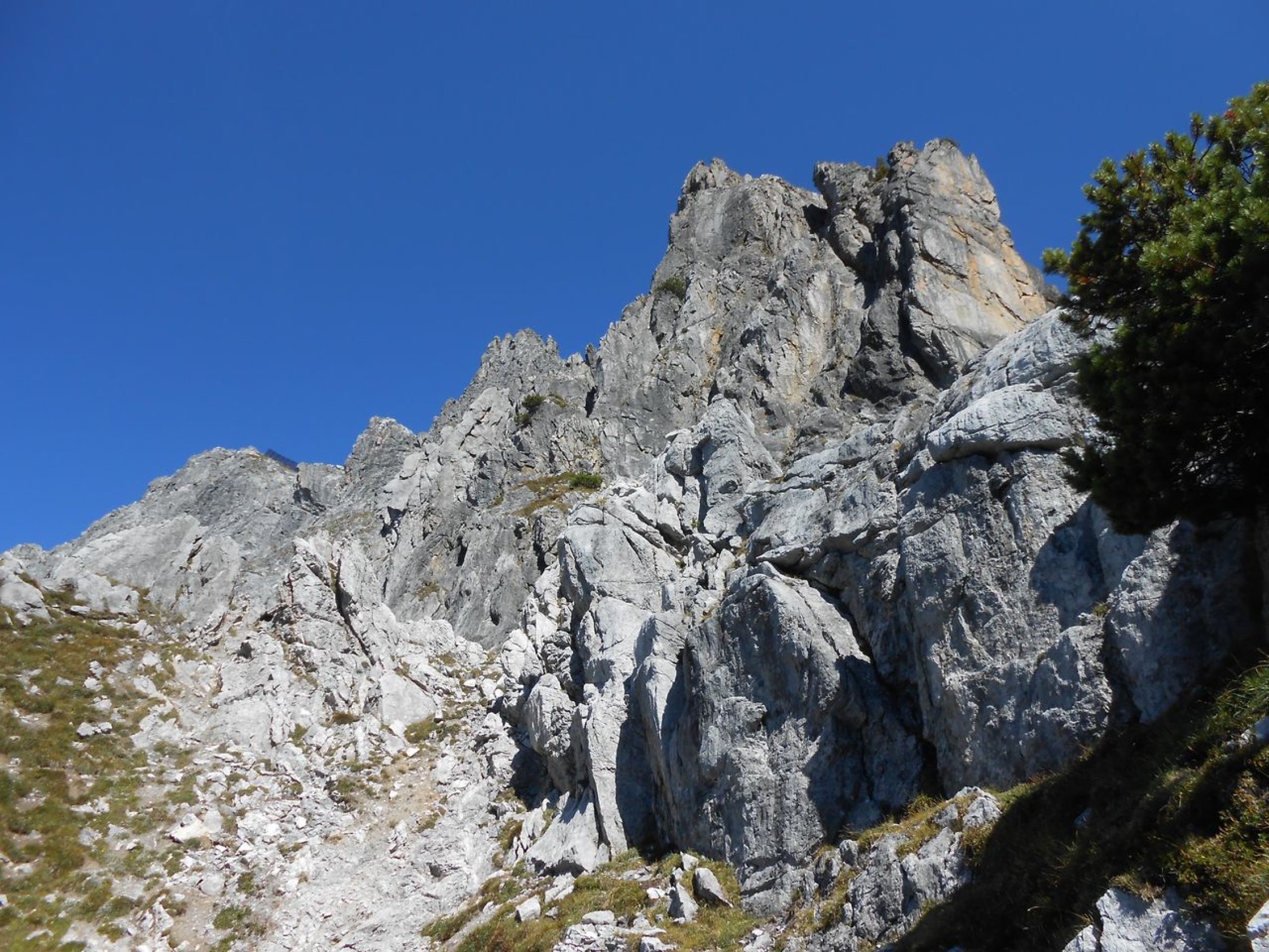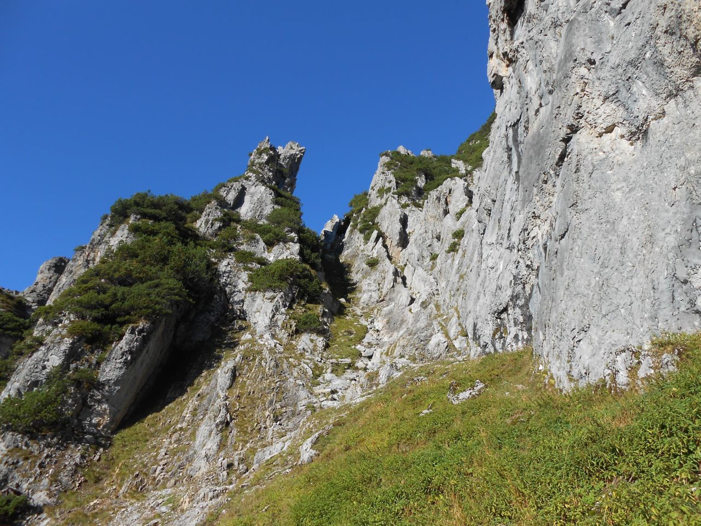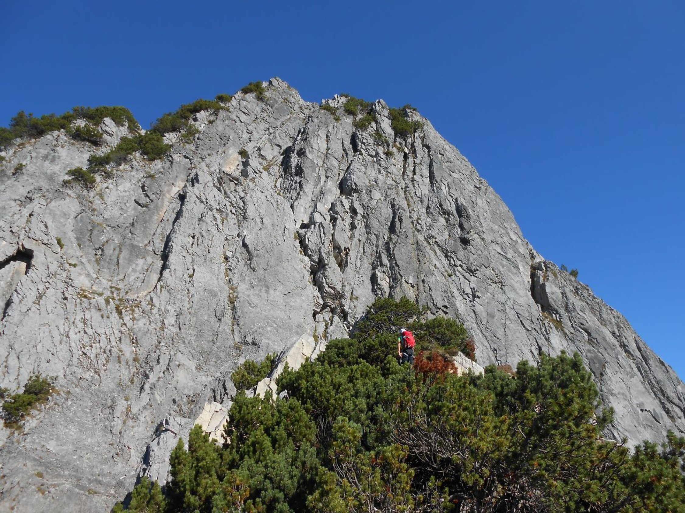 Wir konnten die Tour bei prächtigen und ruhigem Herbstwetter machen. Der steile Zustieg und das Überwinden der Latschenfelder stellen erste Herausforderungen. Bei den Kletterpassagen ist der Fels durchwegs brüchig und vieles ist lose. Das stellt weitere hohe Anforderungen ans Bewegen in dem Gelände. Absicherungen waren mit Camalots und Bandschlingen nur spärlich möglich. Sieht man von ein paar Wildwechsel ab, so sind keine Begehungsspuren auszumachen. Am Roten Turm deutet ein Steinhaufen am Gipfel auf ein ehemaliges Steinmännchen hin. Auf der Tour bis zum Erzberg wird man vermutlich selten andere Kletterer antreffen.