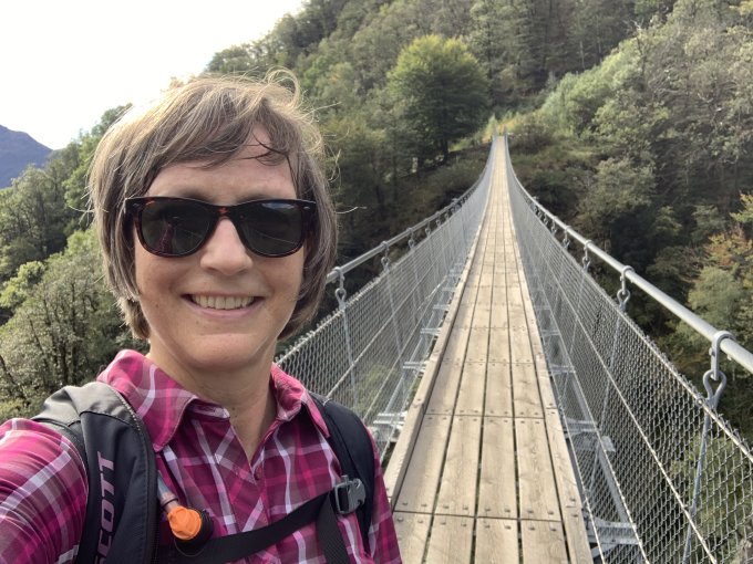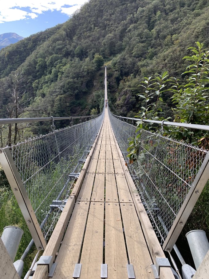 Eigentlich war mein Ziel die Ponte Tibetano Carasc, die ich auch von West nach Ost überschritten habe. Danach bin ich mit der Seilbahn von Curzutt nach Mornera gefahren, wo ich noch einen Abstecher zum Lago Mornera gemacht habe. Der See ist ganz schwarz wenn man ihn anschaut, aber wenn man ihn fotografiert spiegeln sich der Himmel und die Bäume wunderschön.