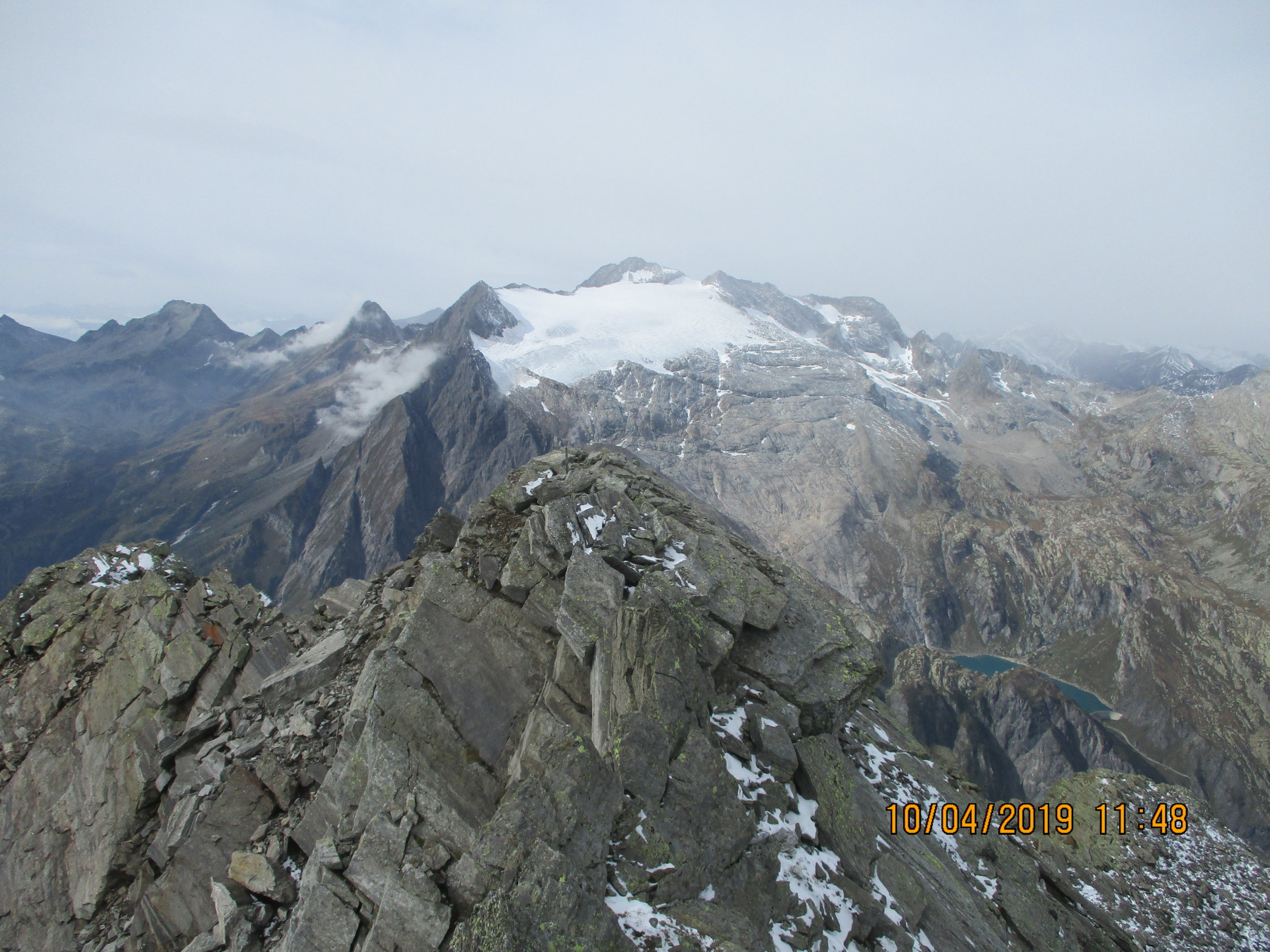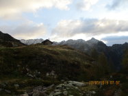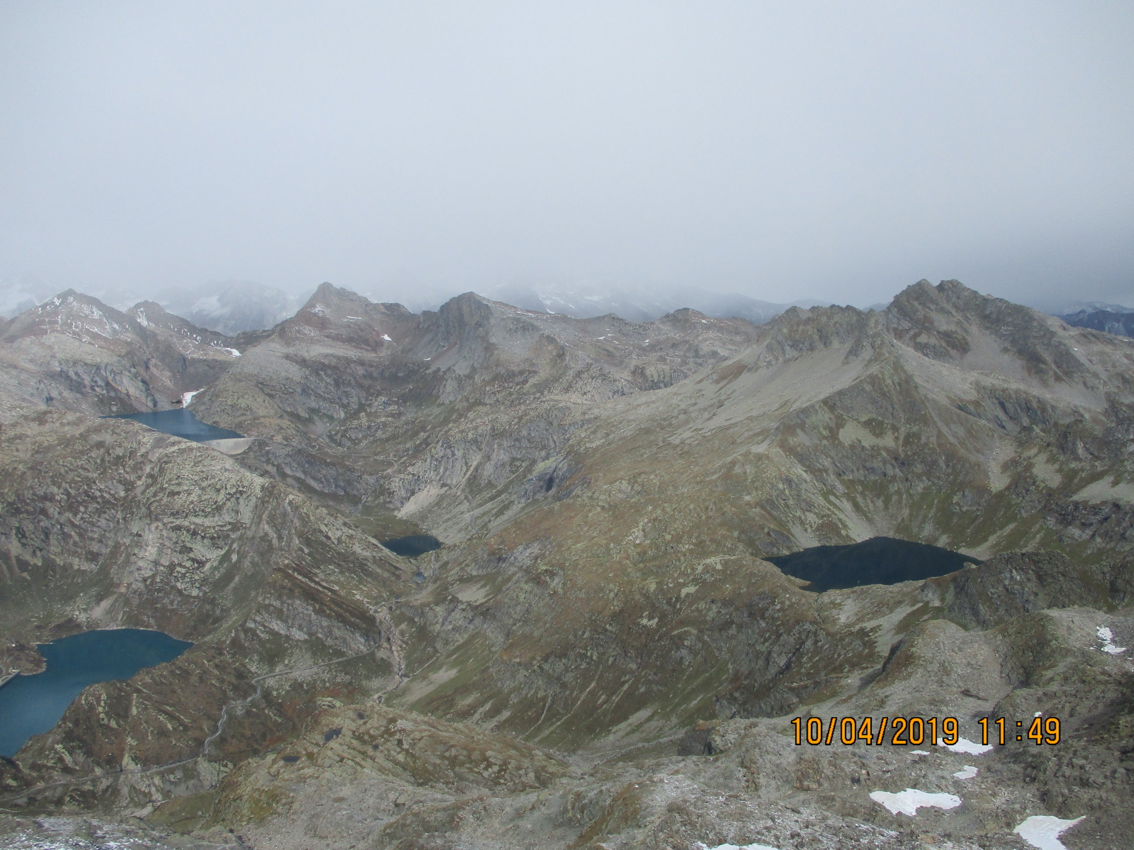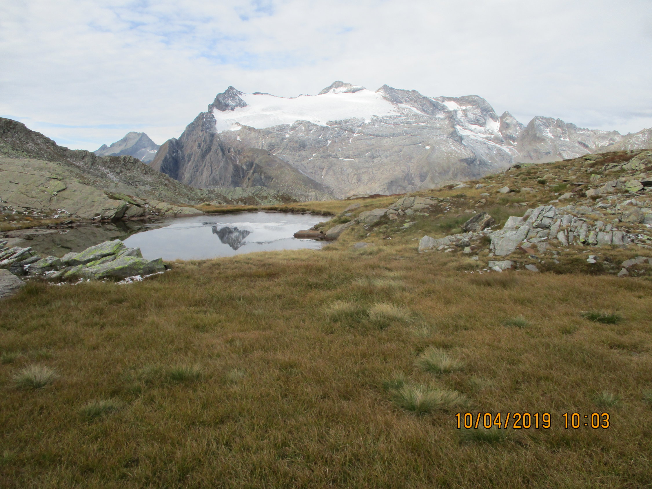 nach einem phänomenalen frühen Morgen zog rasch ein Wolkenschirm aus West und Nordwest auf, der sich in der Folge verdichtete und die Sonne nur noch sparsam durchkommen ließ. Gegen Ende meines Gipfelaufenthaltes zog dann eine Ladung tief fliegenden Gewölks von Nordwest herüber. Als der nahe Basòdino davon ergriffen wurde, blies ich zum Rückzug, und noch während des Abstieges wurde auch der Poncione di Braga von diesen Wolken erfasst und über längere Zeit hinweg von diesen nicht mehr losgelassen. Minimaler Schneefall setzte ein, und es wurde windig und kalt. Am späten Nachmittag, ich war schon längst unten im Rifugio Poncione di Braga, besserte sich das Wetter nochmals, um über die folgende Nacht nochmals mit gleichfalls geringen Niederschlägen zuzuziehen. Am nächsten Morgen war das Wetter wiederum perfekt.