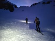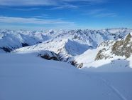 Keinen Pulverschnee gefunden, aber trotzdem gute Verhältnisse. Lawinenstufe 2=. Start um 04:45 Uhr in der Etzlihütte. Schnee nach klarer Nacht gefroren. Aufstieg durch das Chrüzlital problemlos. Abfahrt vom Chrüzlipass hart, aber griffig. Für den steilen Gegenanstieg (Plancaus Calmut) waren Harscheisen nötig, wir haben diese bis zum Gipfel drauf gelassen. Abwechslungsreicher Aufstieg zur Fuorcla da Strem Sura. Aber dort an der Sonne. Der Schnee im unteren Gipfelhang der Oberalpstocks war schon ziemlich aufgeweicht (Stollen an den Fellen). Aufstieg zu Fuss durch den Steilhang unter dem Gipfel, es hatte keine Aufstiegsspuren.