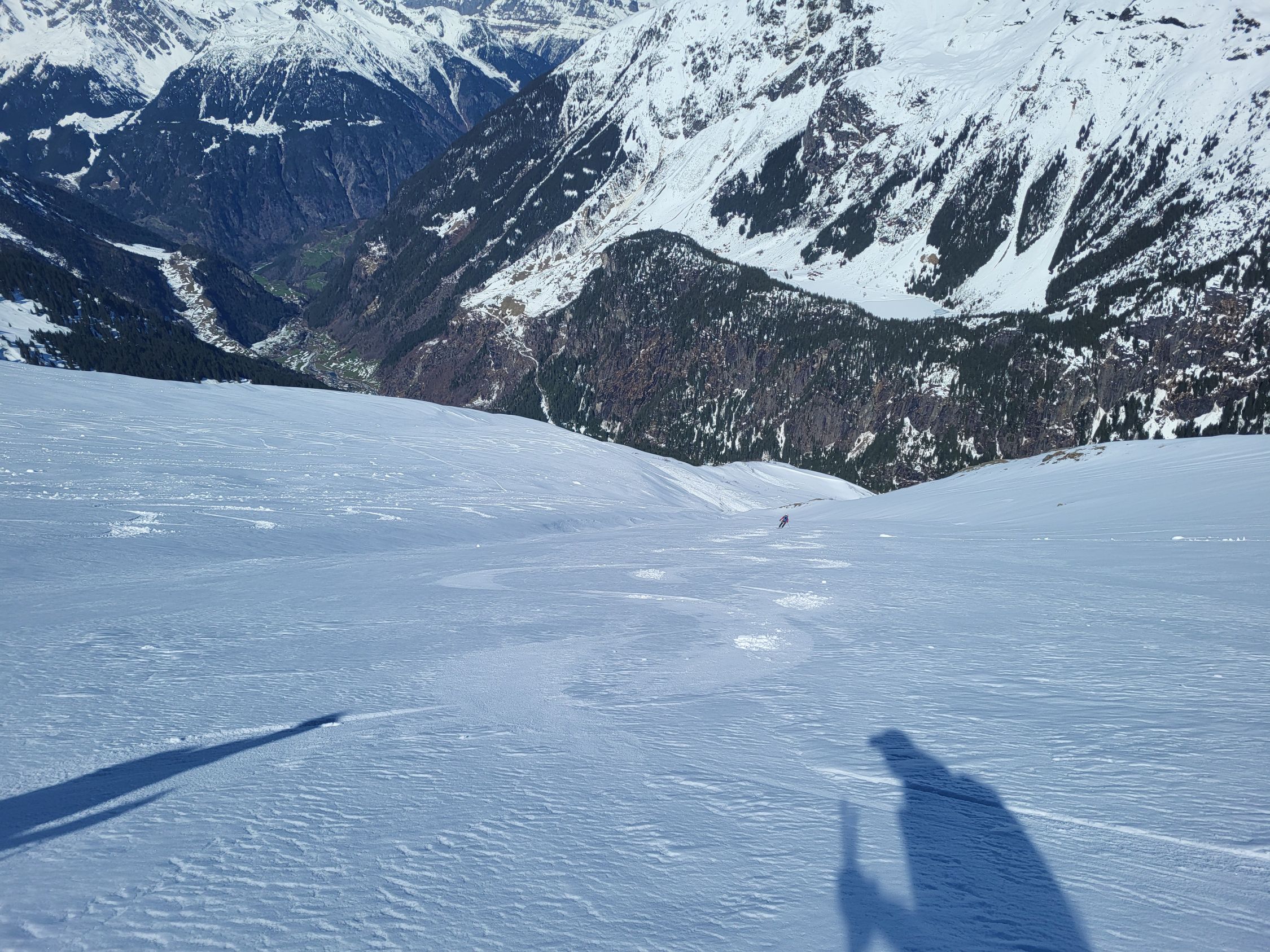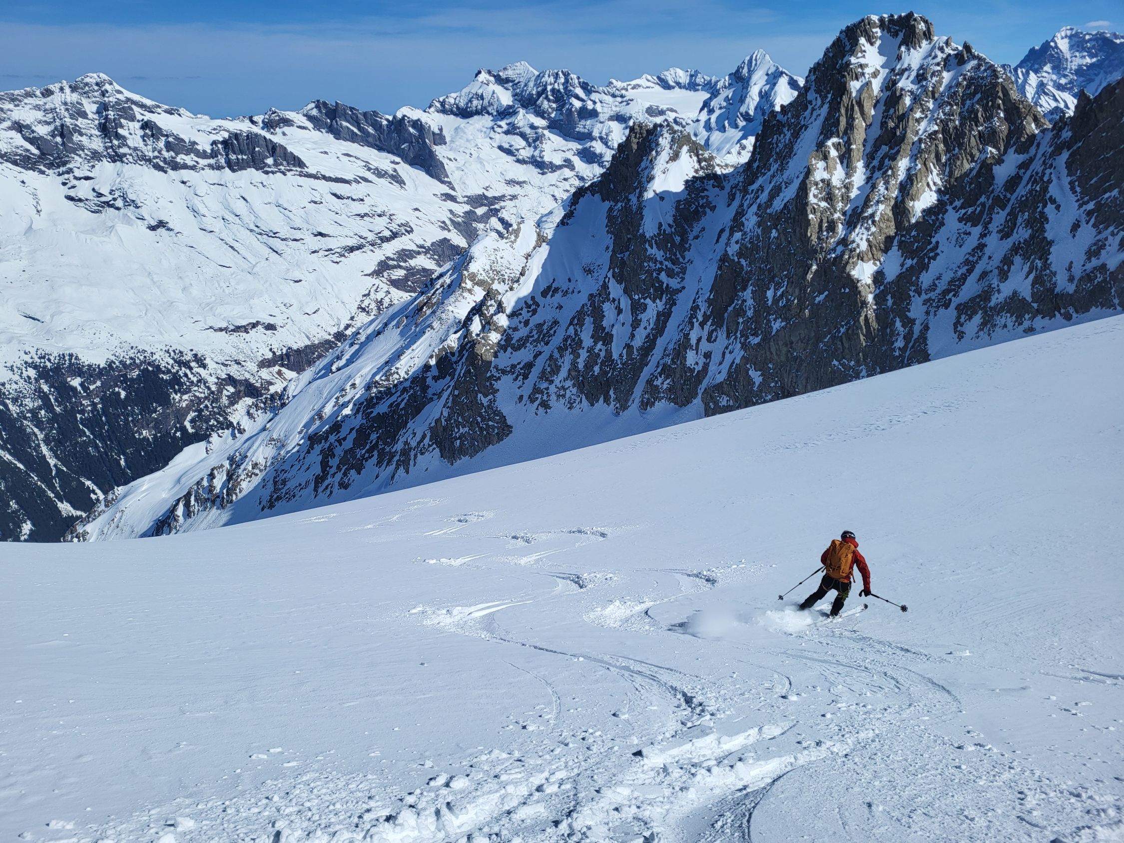 Wie erwähnt hatte es keinen Pulverschnee mehr, aber die Abfahrt über den Staldenfirm ist trotzdem ein grosses Abenteuer in spannendem Gelände. Zitat vom SAC Tourenportal: "Gehört zu den ganz grossen Skiabfahrten der Zentralschweiz."