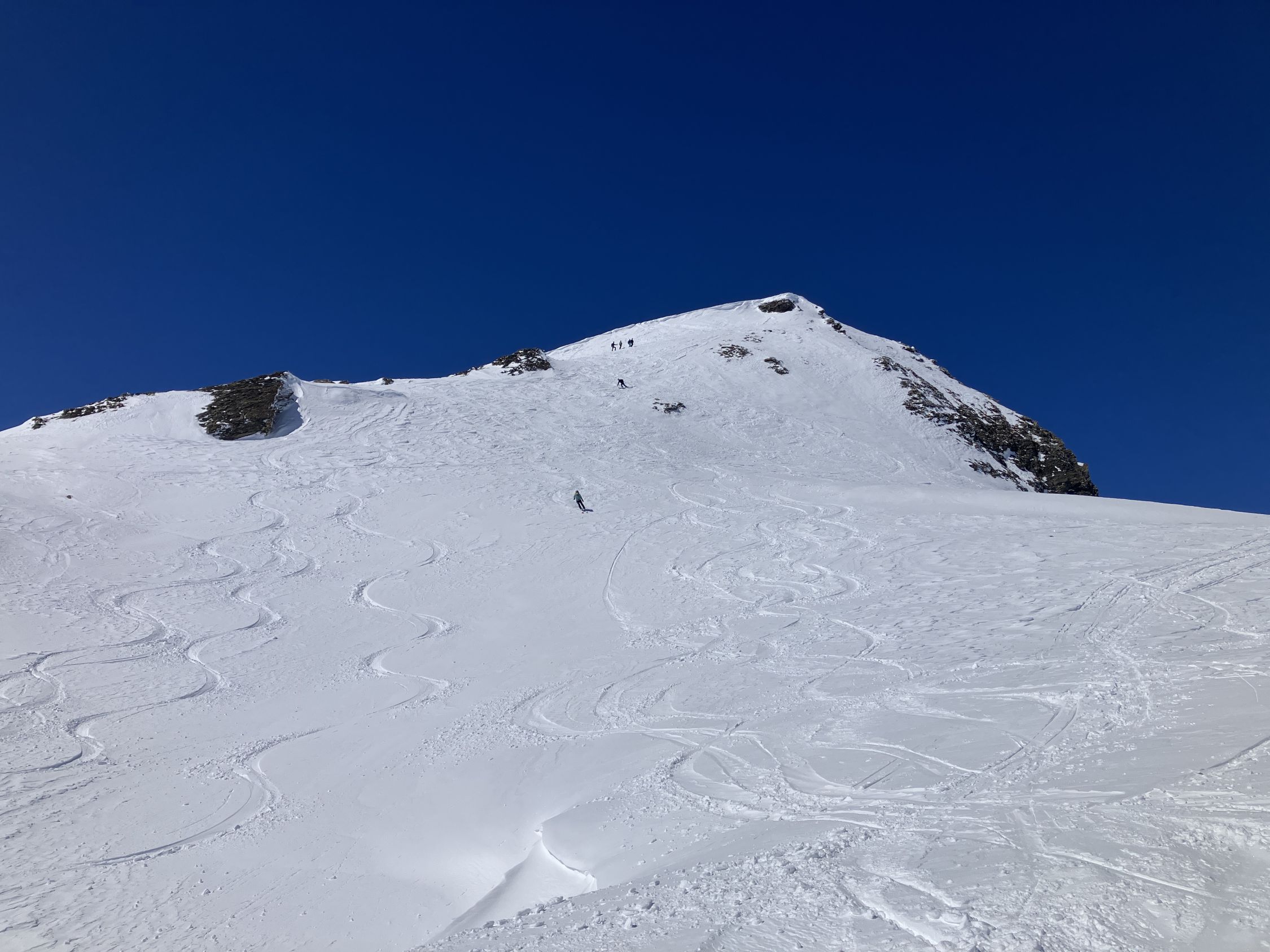 Relativ viel Schnee, Aufstieg in guter Spur. Abfahrt nur oben kurzer Acker, sonst tipptopp zu fahren, viel besser als erwartet. Weil‘s so schön war, gleich nochmal knapp 500 Hm Wiederaufstieg zum Gipfel und das ganze ein zweites Mal genossen.