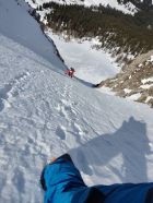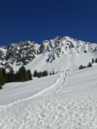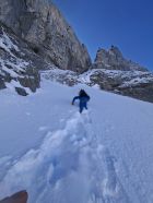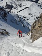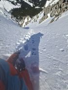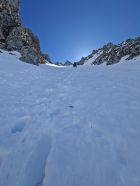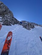 Waren für anderes Projekt in Gegend das wegen Wärme nicht mehr gieng,als Notlösungsversuch mit Spätstart nach 11.00.Erst natürlich Feucht,Zustiegshang recht gut,knappe Schneeauflage auf Fels(Seil nicht gebraucht hoch und runter)Culi erst etwas deckelig auf Pulver,Mitte hart griffig,Ausstieg Pulvrig bis Feucht aber noch sicher,Abfahrt etwas Pflicht(50% schön),Ausfahrthang top Sulz tief schön und feucht bis PW)13.30 Uhr...top gepasst.wer hät das gedacht beim Start