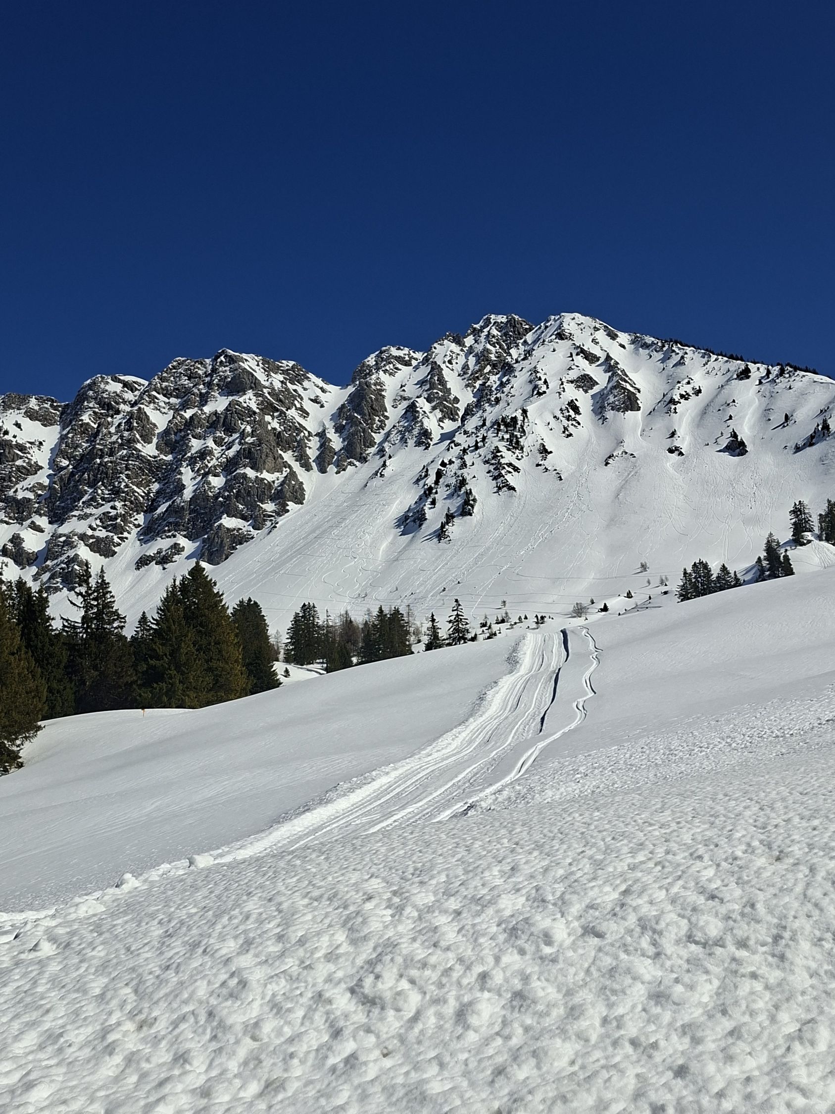 Bei Tour am Freitag am Hongrain hinten (hatten Nord noch schönsten Pulver und Presspulver bei kühlen Temperaturen)gesehen das es passen könnte(und als Notlösung im Hinterkopf gespeichert).Die beiden andern NW Culis sind auch gefahren worden die Tage.