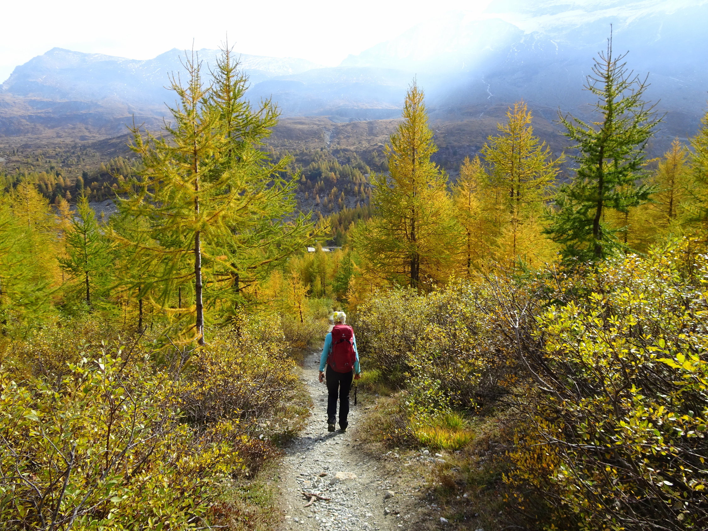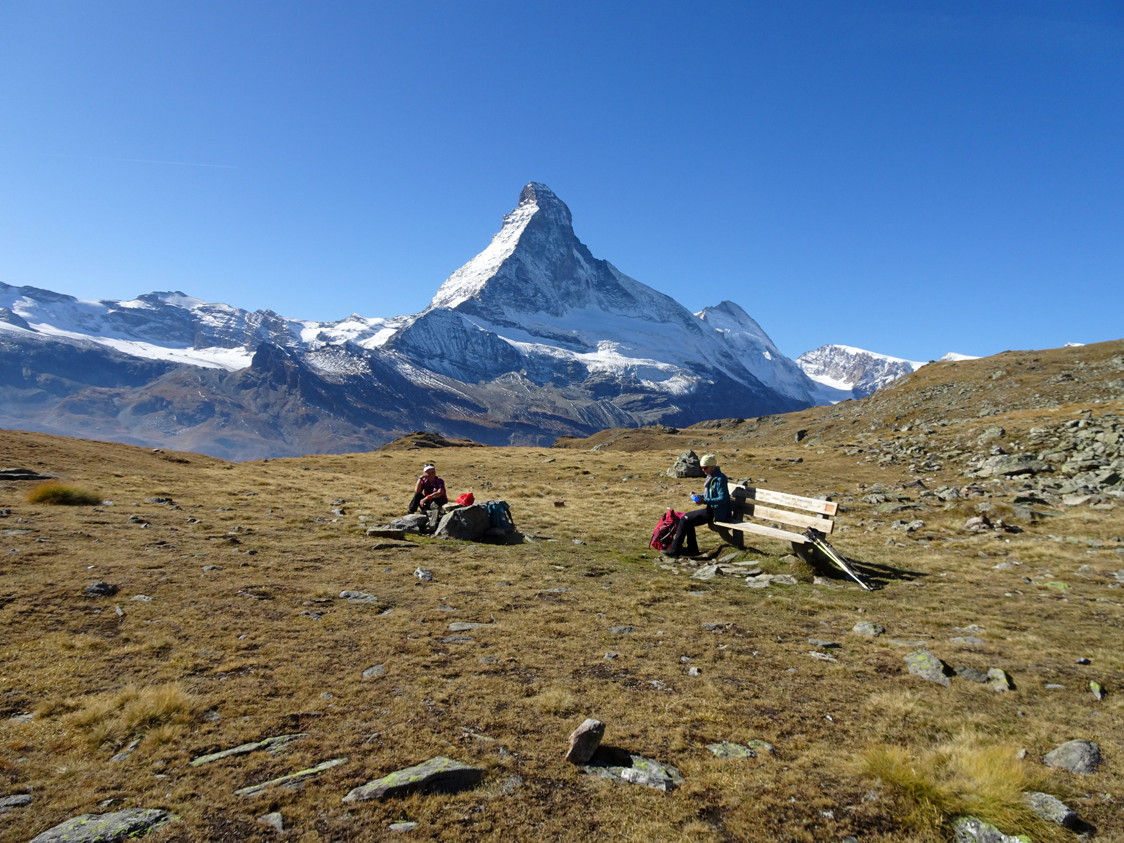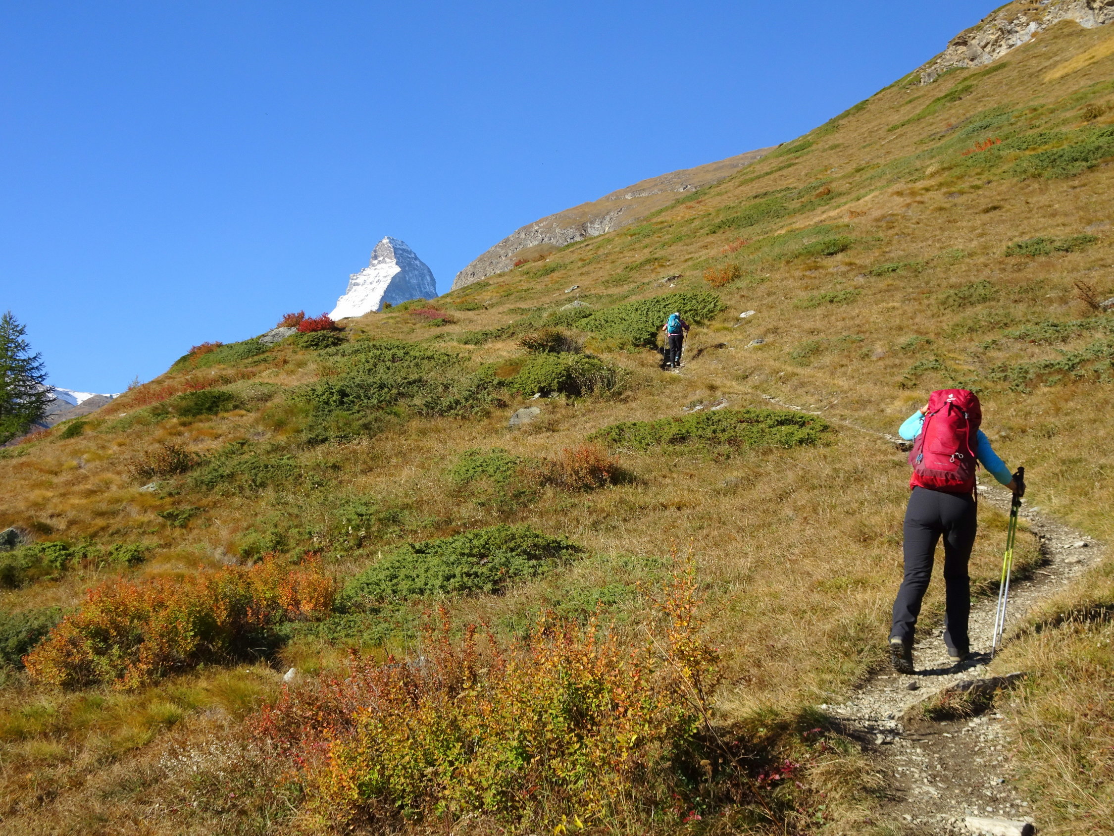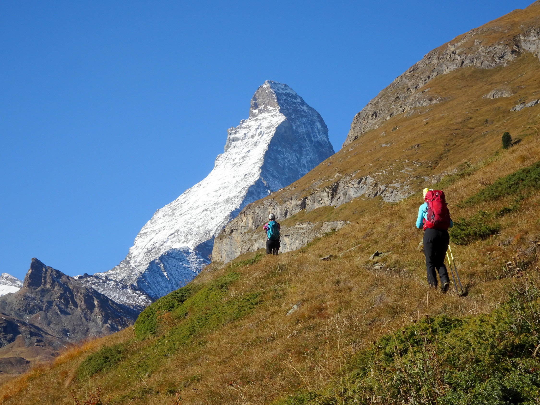Dasselbe Erlebnis innerhalb vier Tagen. Was man vor Jahren "gemacht" hat, erscheint heute steiler, länger und mühsamer was eine normale Erscheinung ist. Wiederum dank der Routine kommt man durch und erlebt so einen wunderbaren Tag in guter Gesellschaft. Das war es wert! Allein der Blick aufs Matterhorn und Monte Rosa aus einer ungewohnte Perspektive hat den Tag zum grossen Erlebnis gemacht. Wer eine lange und zuweilen anstrengende Wanderung nicht scheut, sollte die mal machen, am besten im Frühsommer wenn es blüht. Der Weg wird auch als "Blumenerlebnis Weg" gepriesen.