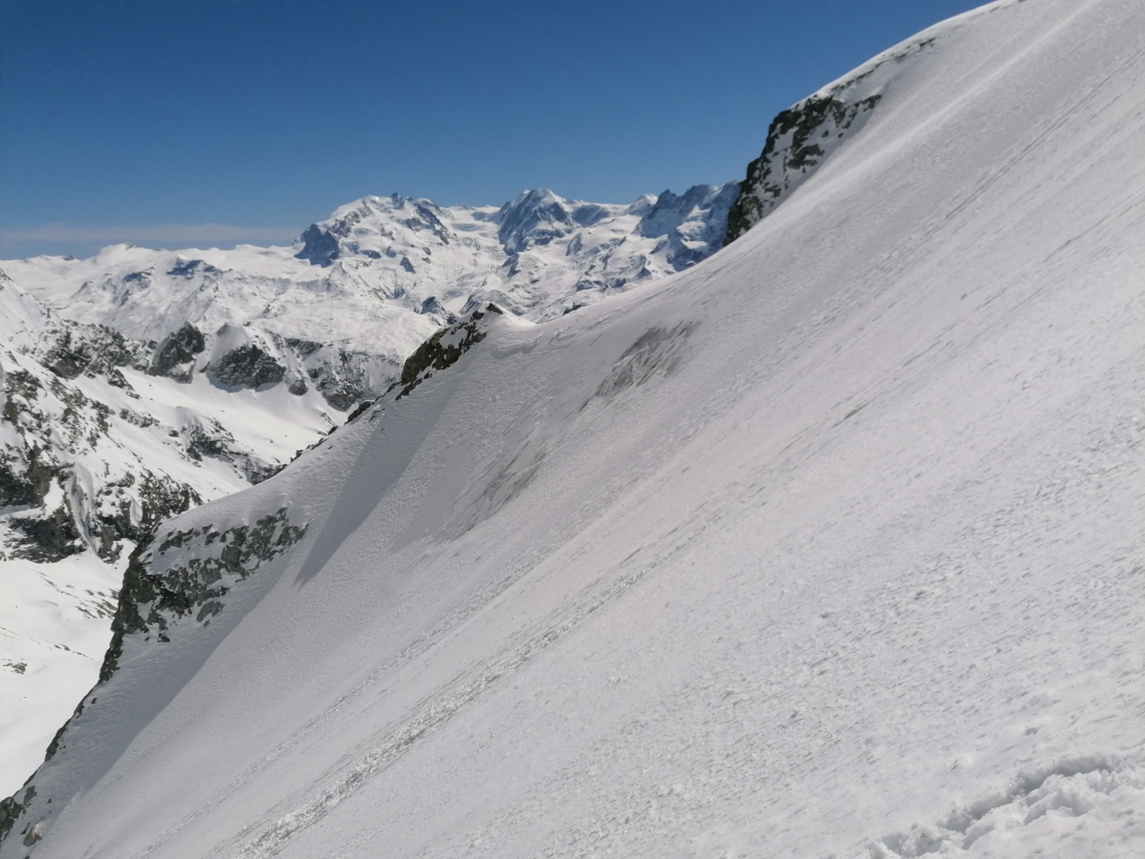 Gut. D. h. Kaiserwetter. Windstill und mild. Bis zum Umkehr Punkt auf 3500m sind wir infolge der starken Erwärmung umgekehrt. Folge, Lawinengefahr. Alt-und Neuschnee, sowie Nassschnee-Lawinen sind von den Wächten abgegangen. Es handelt sich hier um eine Skitouren Erstbegehung.