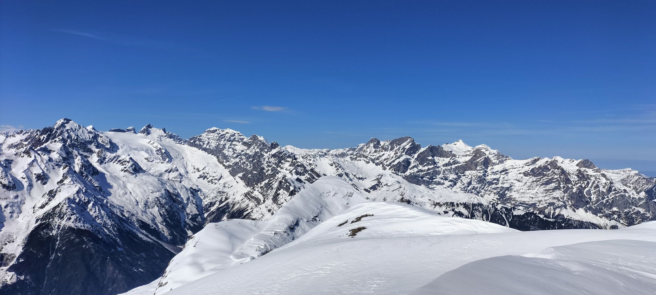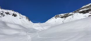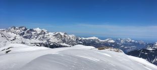 Start der Tour in Unterschächen Vielen, die Ski konnten schon bald nach der Brücke montiert werden, nach der Waldgrenze nach Brunni viel Sonnenschein mit warmen Temperaturen, heute auf der ganzen Tour eine gute Aufstiegsspur, der Gipfel vom Hoch Fulen zog sich in die Länge, Abfahrt oben noch gut, dann noch zweiter Aufstieg zum Sprossengrätli mit der Variante Schwarzstöckli Umrundung, die Abfahrt heute nicht der Hit, vom Regen vom Vortag eher schwerer Schnee , bei der Schlüssestelle dann harter Schnee, an Action fehlte es heute nicht.