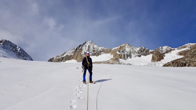 Als den schwierigsten Moment der Tour würde ich die steile Flanke oberhalb der Oberaarjochhütte bezeichnen. Es liegt dort sehr viel Schnee, der nach dem Mittag matschig wird und in den man zeitweise metertief versinkt. Ist aber machbar.
