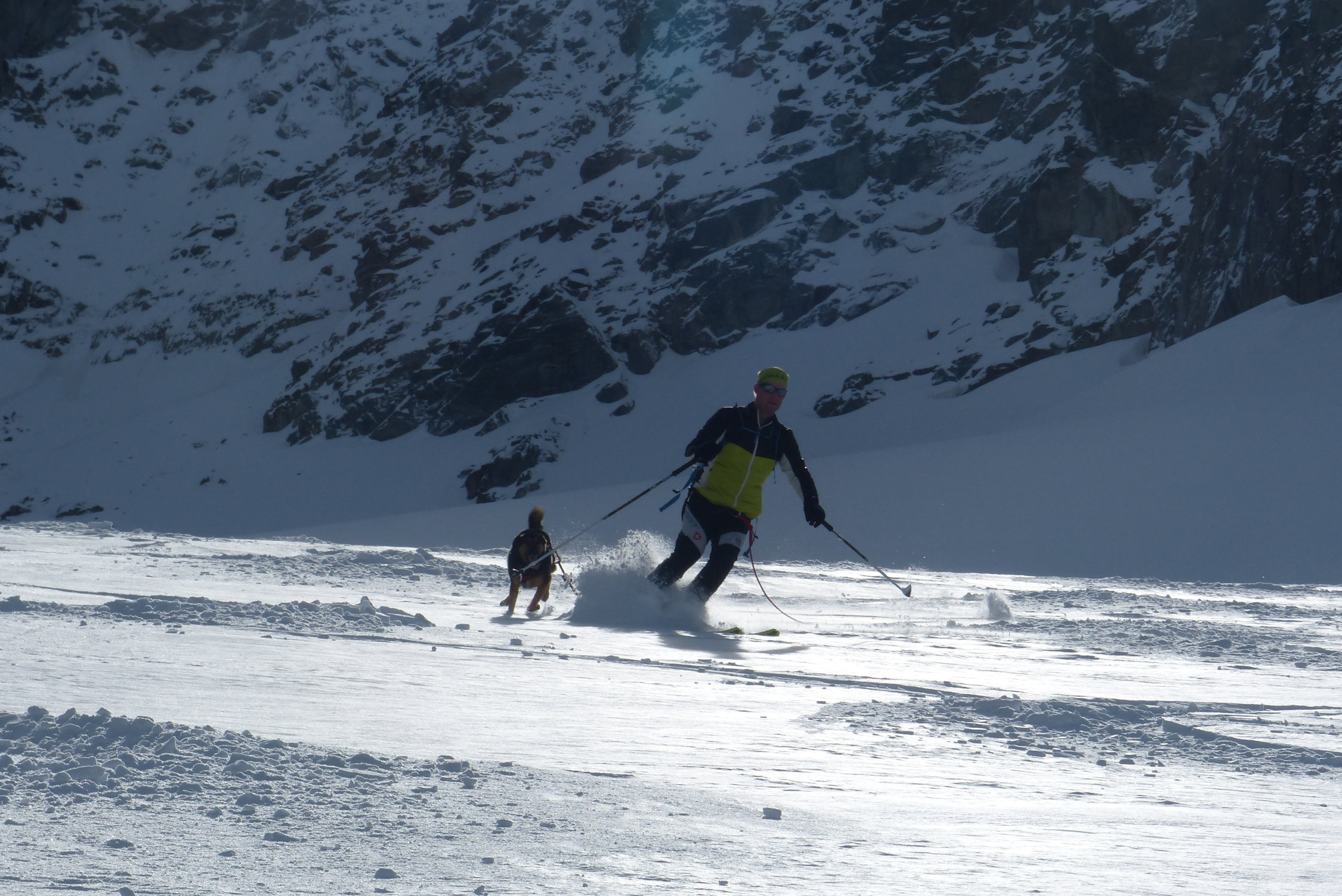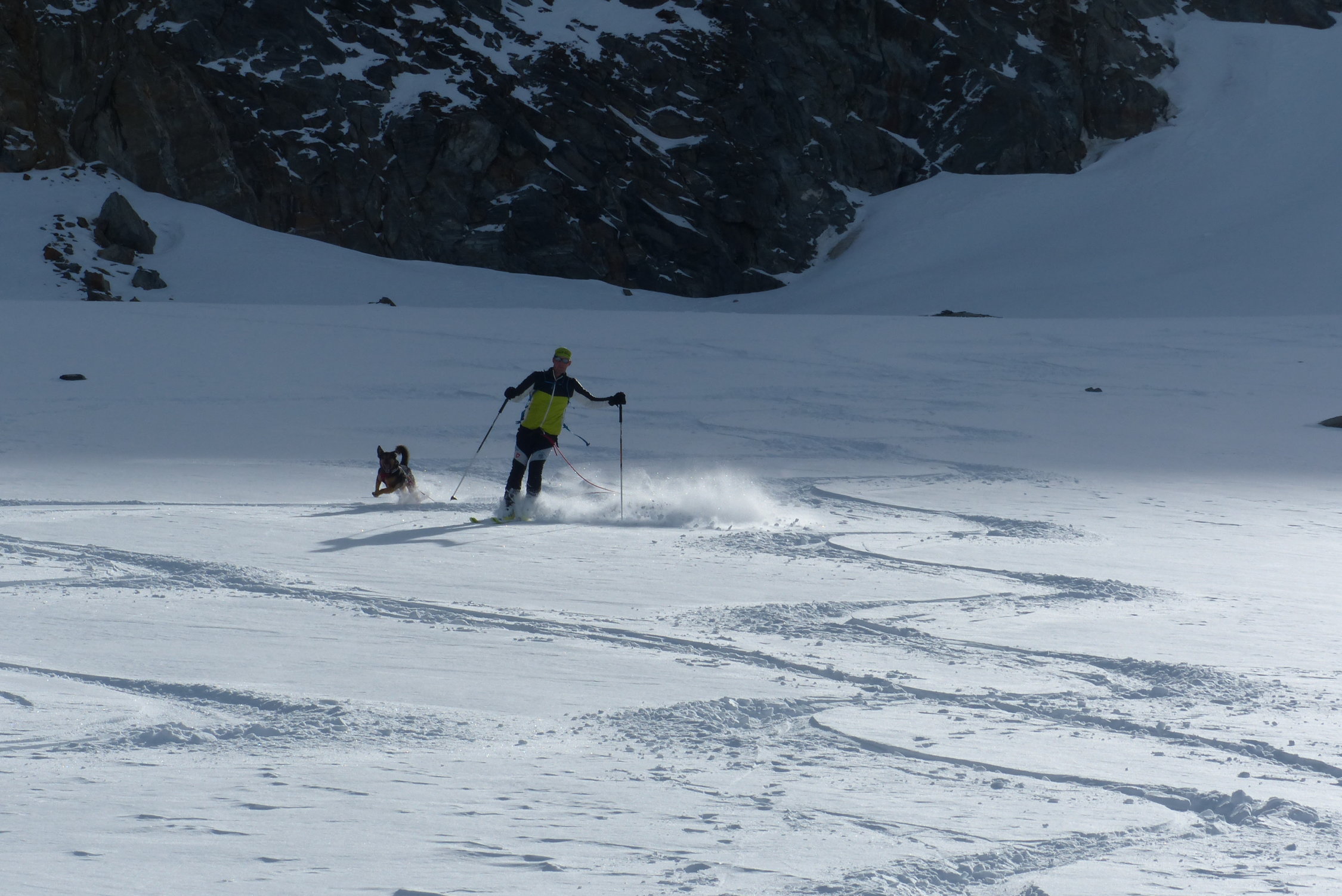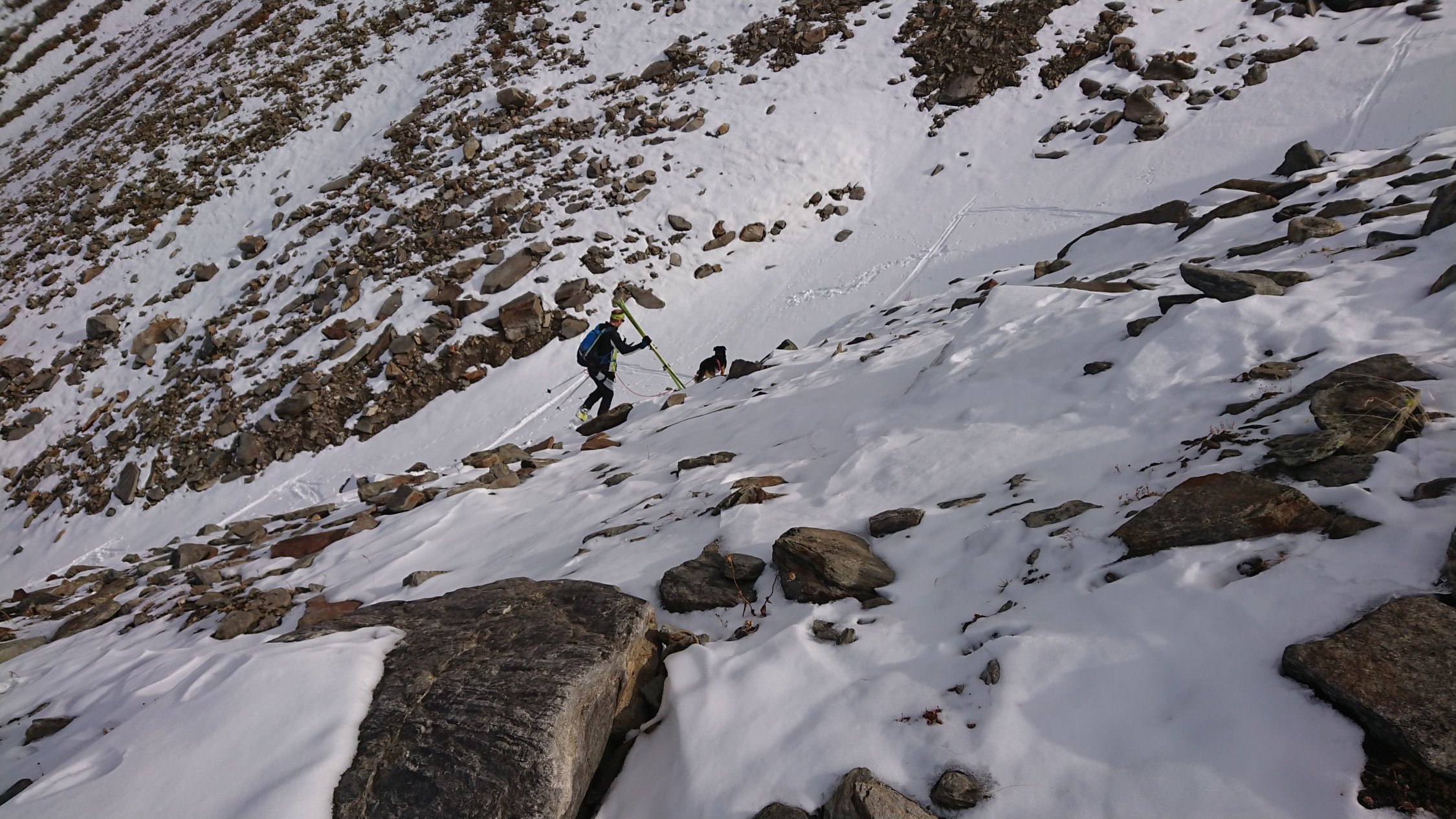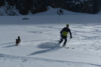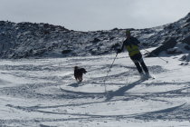 Erstaunlicher weise konnten die Skis gleich beim Start angeschnallt werden. bis zum Gletscherfuss unterbrochen durch Tragpassagen. Dies natürlich auch auf dem Rückweg.Heute war der Teil zwischendrinn ( Höhe ca. 2600 bis 2700) im Aufstieg und in der Abfahrt mit Mehraufwand - Tragpassagen versehen. Das gehört aber bei diesen Verhätnissen dazu.