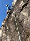 Via Eugenio ist eine der schönen Routen am Castelliere in diesem Schwierigkeitsgrad. Die ersten 4 Seillängen sind anhalten steil im besten Fels, nachher einfacher aber trotzdem lohnend bis nach ganz oben zu klettern. Die Absicherung ist super die Schwierigkeitsbewertung wie üblich in dieser Gegend hart. In den Alpen würde diese Route mit 5 b bewertet. Macht aber nichts - man weiss es ja. Die kletterei ist toll - einfach nicht erschrecken wenn mann von unten die glatte Wand hochschaut :-) es ist ja nur 4c und es kommt immer wieder eine kleine Leiste oder ein Loch wo man Halt findet.