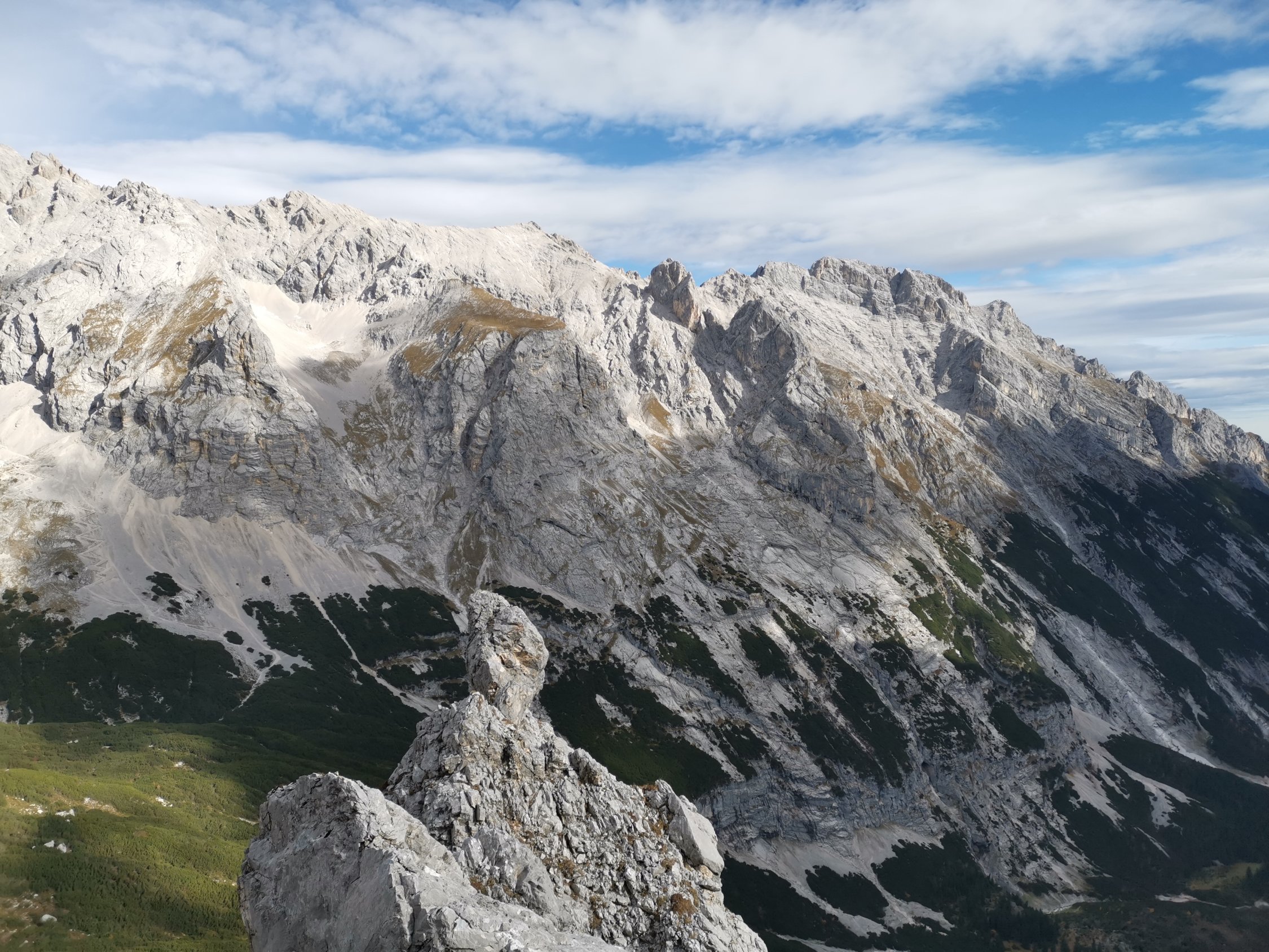 Von der Talstation der Ehrwalder Bahn mit dem Radl (zugegeben meist geschoben) zum Abzweig zur Hochfelderalm (Radldepot). Weiter übers Gatterl und über kuppiertes Gelände ins Skigebiet. Dann hat es leider zugezogen.