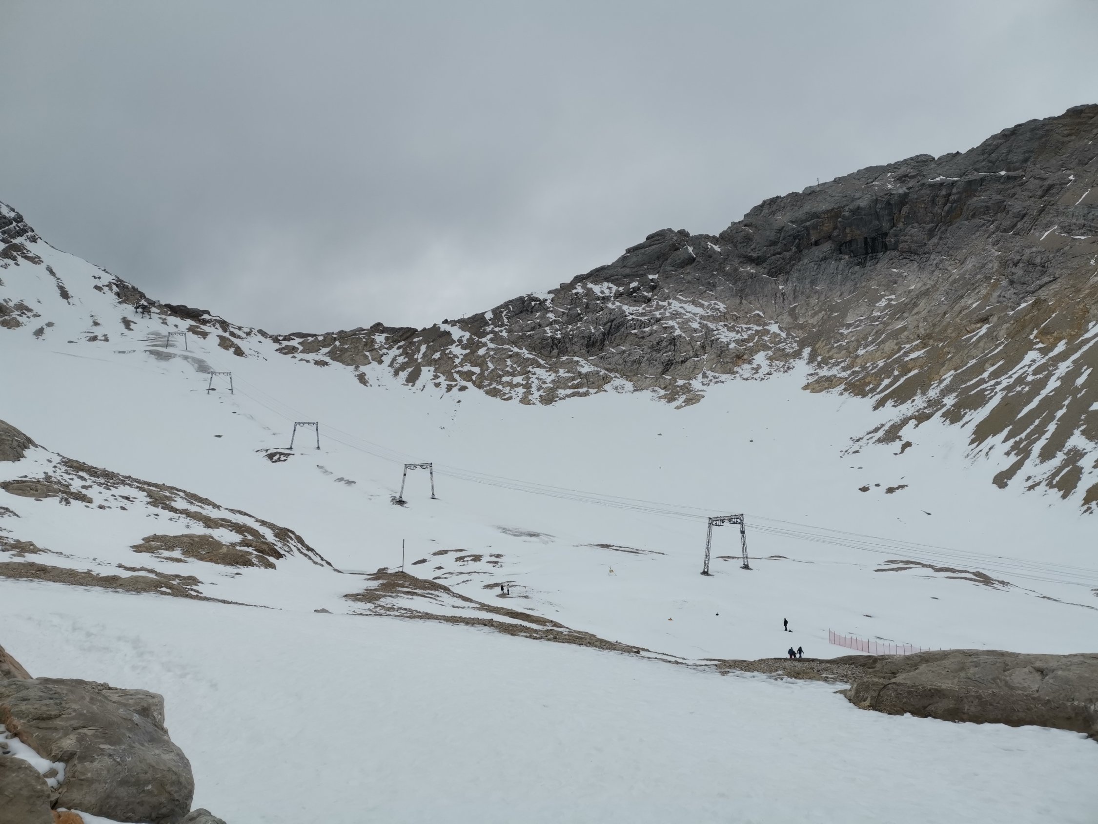 Schnee so ab 2400. Man hat auch schon angefangen die Pisten herzustellen.