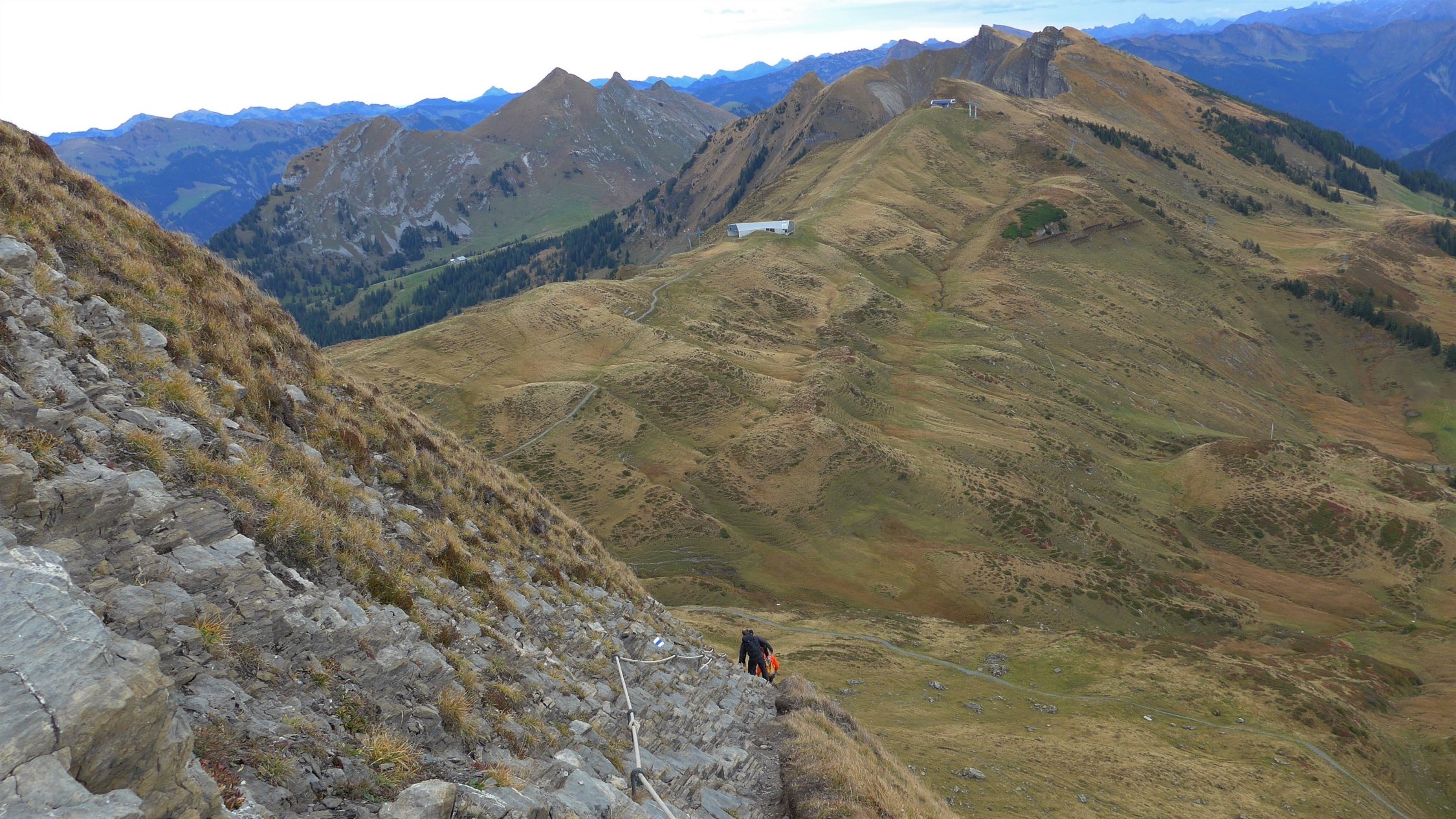 Marode Knochen kommen mit dem Ugaexpress und erreichen bald den blau-weiss markierten Gipfelsteig. Die Bike & Climb Tour startet an der Talstation. Nach der Gipfelbesteigung ist die tolle Abfahrt über die Argen- und Argenwaldalpe nach Untertobel eine super Zugabe. Dafür darf man dann wieder gute 150 Höhenmeter nach Damüls hinaufkurbeln.