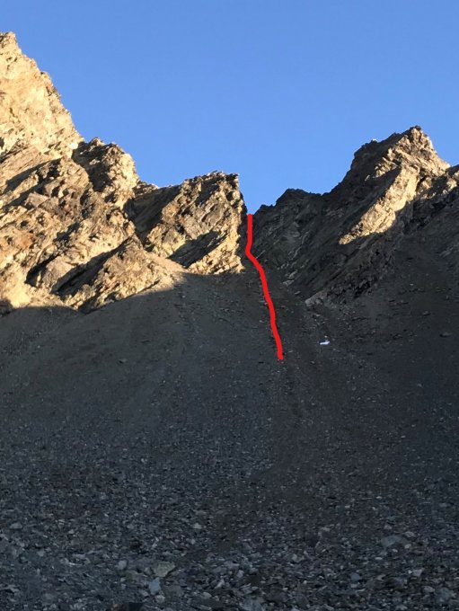 Rinne zu P.3035 trocken, kein Schnee. Ist nicht absicherbar, denn die Felsen sind brüchig, ist aber auch gut zu meistern. Aufstieg am Grat, tw. mit Schnee bedeckt sehr viel loses Gestein. Sicherungen können mit Schlingen oder mit Seil um die Felsen angebracht werden. Es hat auch ein paar wenige Bohrhaken die man benützen kann. Abstieg ist abenteuerlich!! Die Rinnen sind sehr Steinschlag gefährdet.