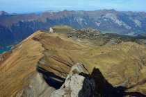 Überschreitung von First nach Schynige Platte Von der Bergstation First den Wanderweg folgen bis zur Faulhorngipfel. Dann über den Westgrat runter bis zur Abzweigung (Punkt 2522m) des Wanderwegs nach Iseltwald. Hier runter über den Fulegg bis zur Bonerenweng (Punkt 2281m). Von hier über den Grashang des Schwabhorns zum Gipfel.
