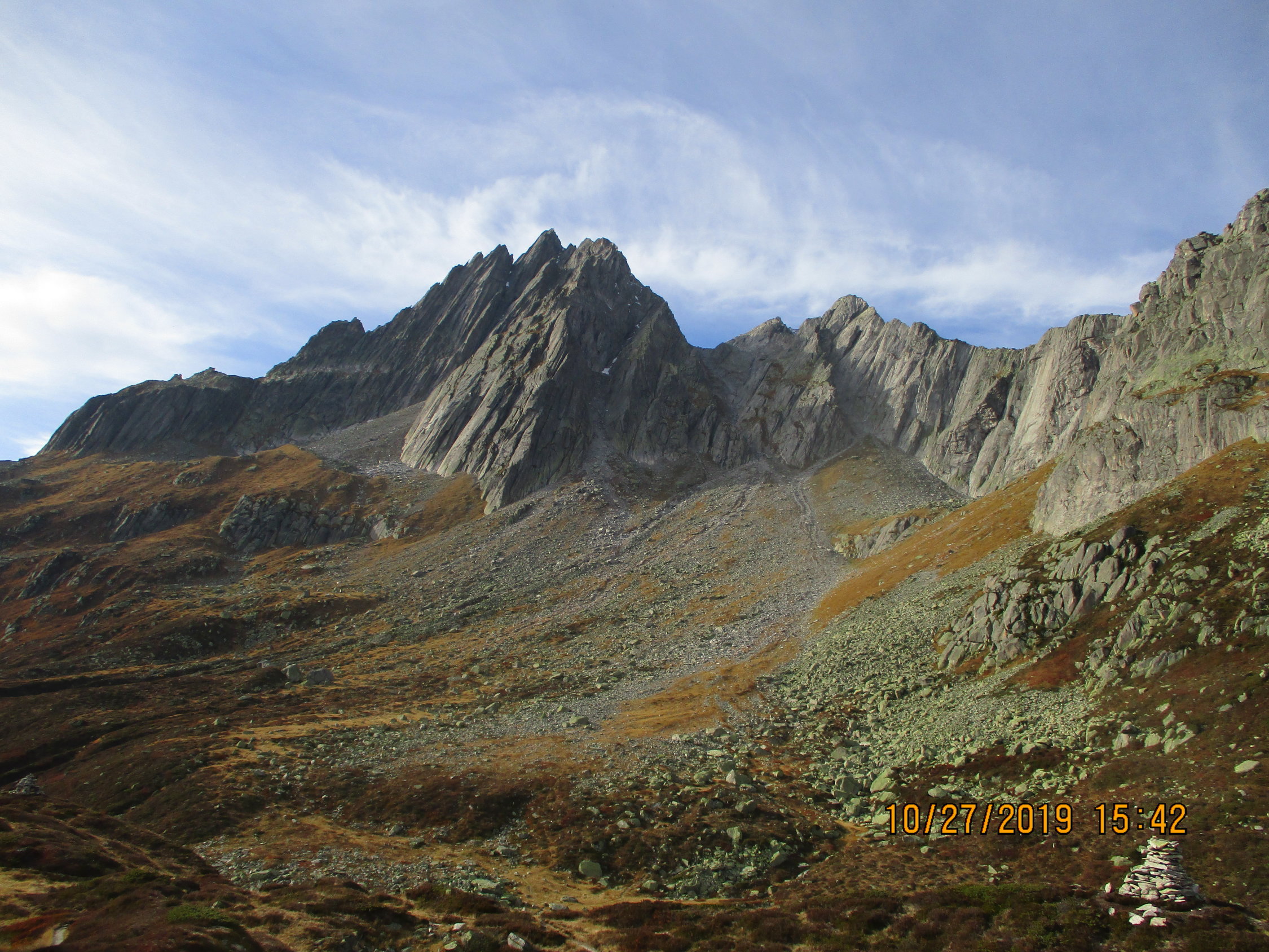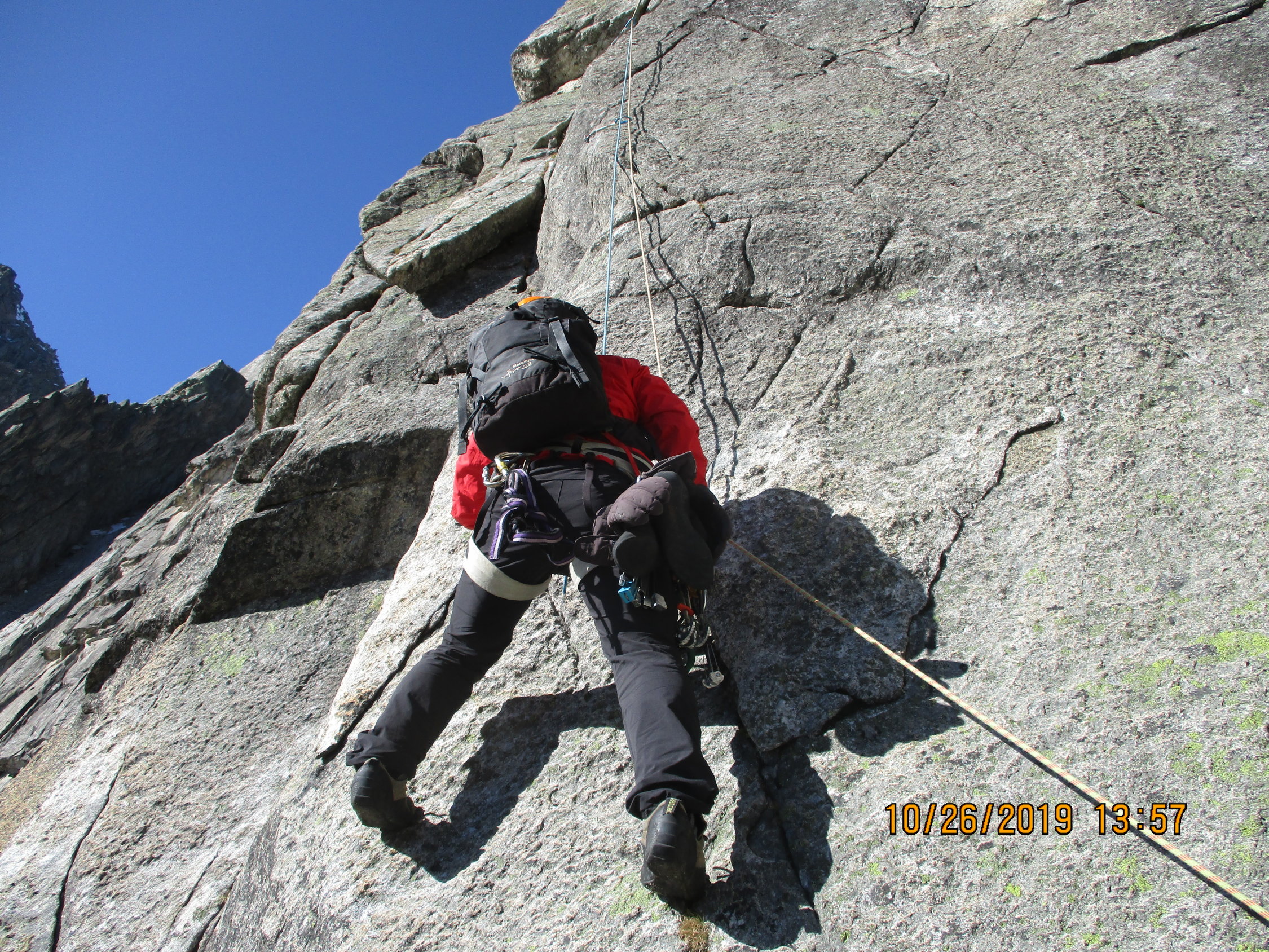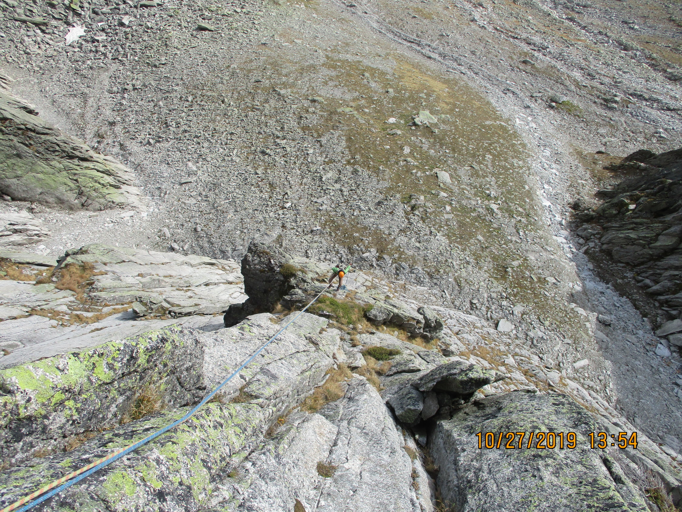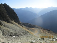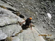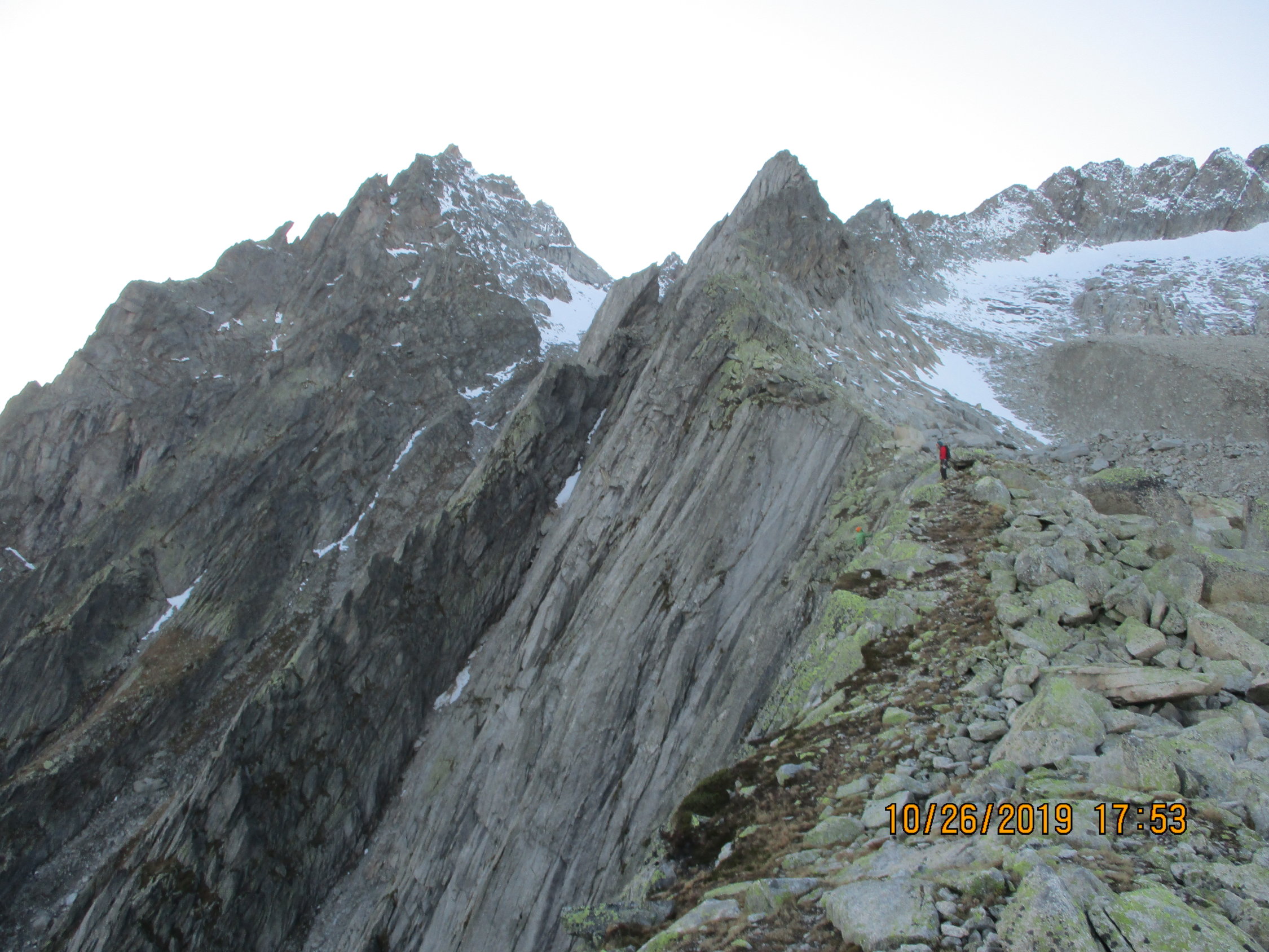 1. Der Fußabstieg über die Normalroute vom Salbitschijen ist verschneit. Laut Aussage eines Kletterpärchens, welches den Südgrat gemacht hat und anschließend dort abgestiegen ist, seien hierfür Steigeisen dringend empfohlen.