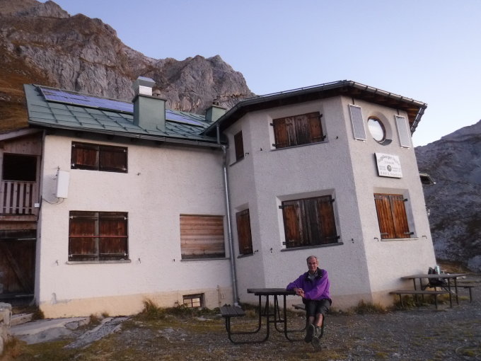 Augsburger Hütte hatte geschlossen. Sauberer, gemütlicher, jedoch kleiner Winterraum ist offen. Dort begegnete ich kurz nach Sonnenaufgang 3 Augsburger Jägern, die sich dort einquartiert hatten und gerade mit einem Hund loszogen.