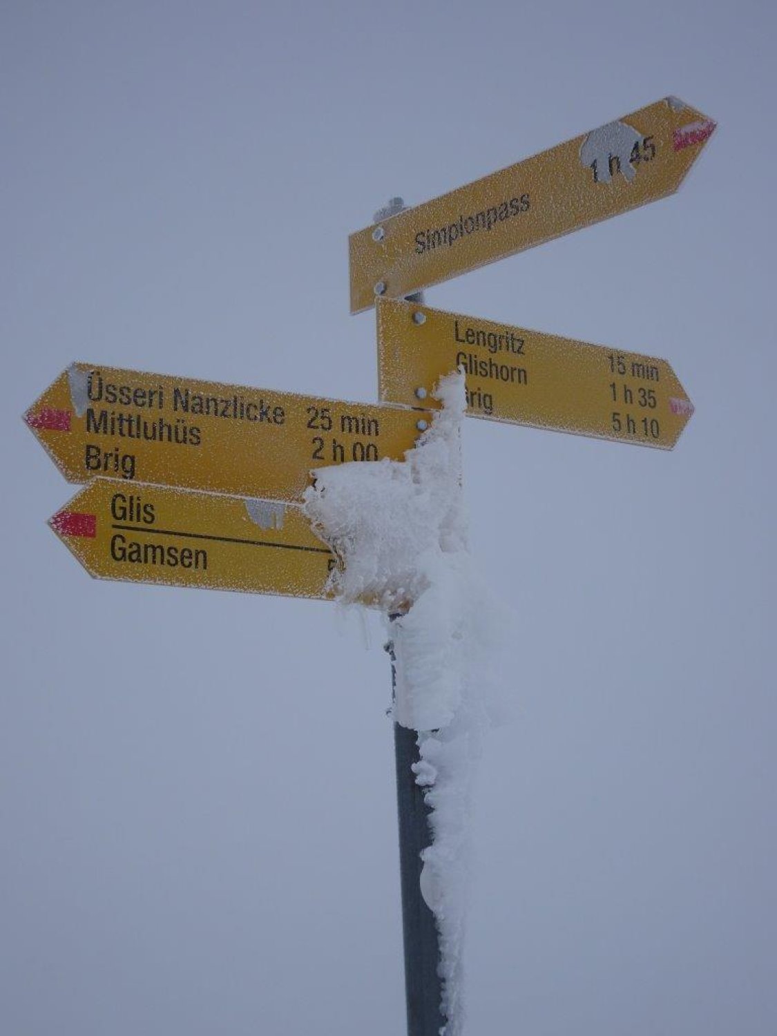grundsätzlich "gut" bis auf die rasche Wetterverschlechterung. Um 8 Uhr beim Start -4° mit dem Wind gefühlte -10° sah es noch positiv aus. Zwei Stunden später dann die relativ rasch aufkommende Front mit immer stärkerem Nebel. Der Bergweg via Hopsche bis zum Wegweiser beim Pkt.2470 dank den noch nicht ganz zugeschneiten Steinmandli im Nebel erkennbar. Nach dem Wegweiser dann aber Nullsicht. Die Üsseri Nanzlicke nicht mehr erreicht und daher Umkehr und Abstieg zum Hospiz.