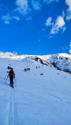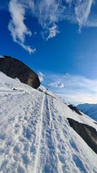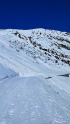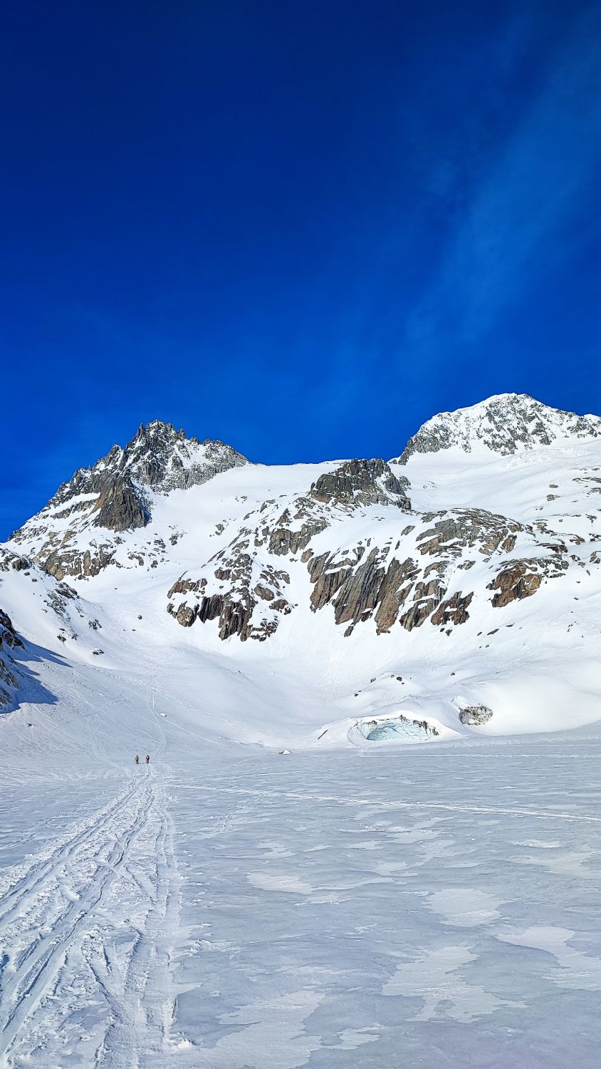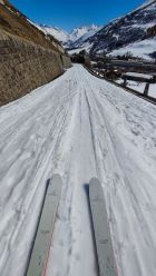 Gute Spur, teilweise rutschig, neben der Sur besser. Die ersten paar 100m der Strasse ab Realp nicht mehr lange mit Ski machbar. Ab Hotel Galenstock nich mehr als genug Schnee. Abfahrt leider zu spät. Oben bis Ebene unterhalb Albertheim Hütte noch gut, anschl. Sumpf. Auf Strasse nicht viel besser.