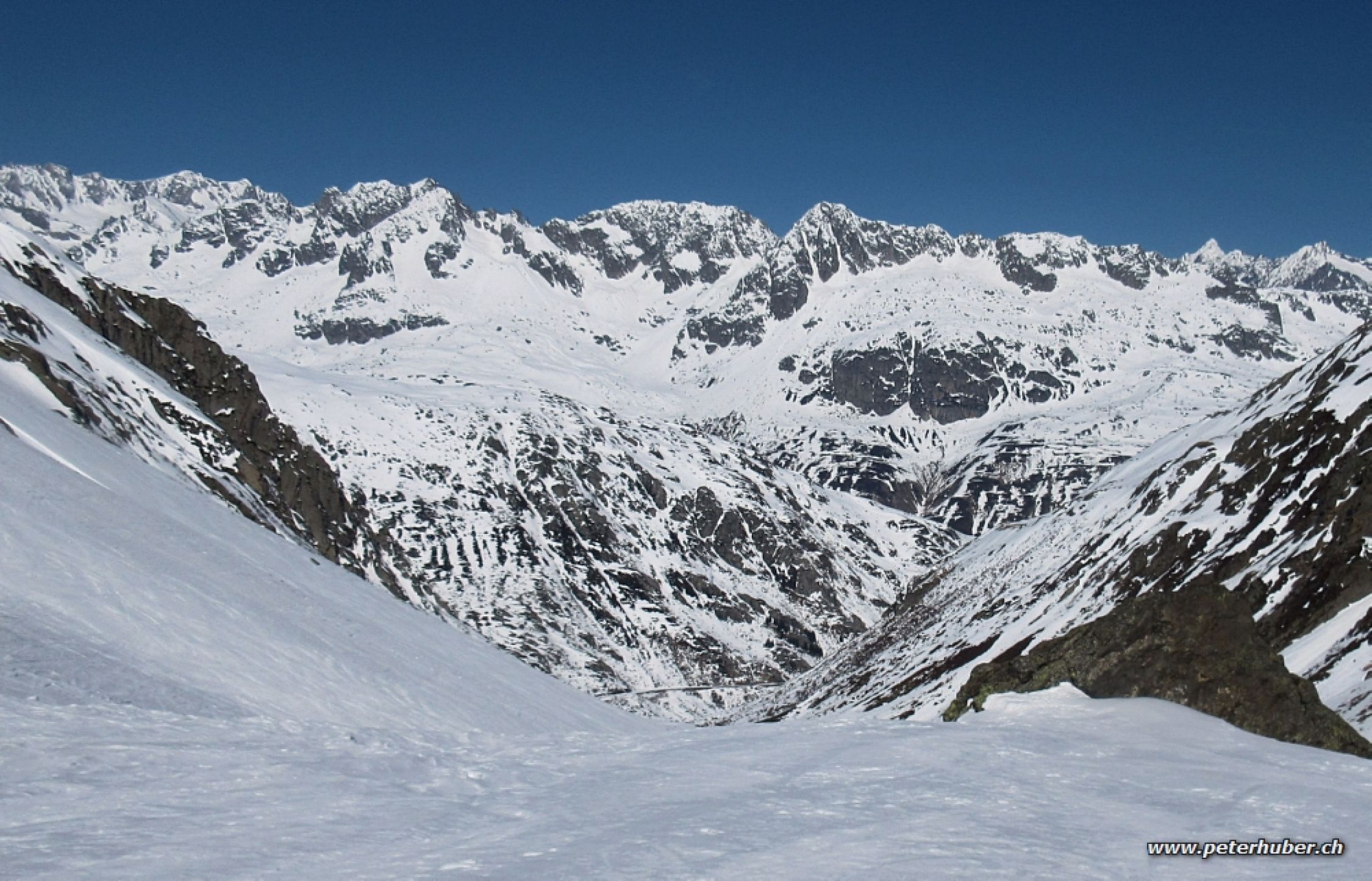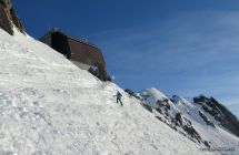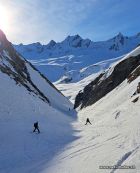Erste Abfahrt auf der Südseite des Gemsstocks Richtung Gafallenlücke sehr hart. Echt anspruchsvoll in den vielen alten, gefrorenen Spuren. Dann weiter Richtung Vermigelhütte durch den Gafallensaum. Schnee hart geforen mit nur wenigen alten Spuren. In der Schlucht praktisch keinen Lawinenschnee.