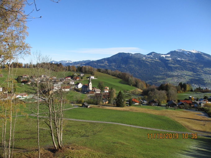 Prachtvoller Sonn(en)tag, mit glasklarer Luft und durchaus schon winterkalten Temperaturen (schattseitig um den Gefrierpunkt herum). Weitsichten in die umgebende Berg- und Tälerwelt, sowie über die Nebelsuppe des Bodensees hinweg.