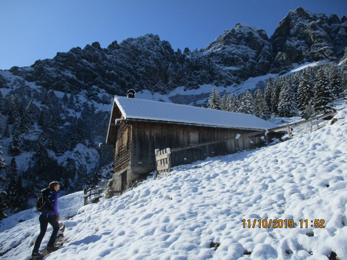 Böden gefroren und der Großteil der Routen mit frischem Pulver überzuckert, bis etwa 20 cm. Richtige Vereisungen gab es kaum. Wer mit solchen Gegebenheiten umzugehen weiß, wird die Verhältnisse als gut befinden. Insofern waren Stöcke und festes Schuhwerk ausreichend. Selbstverständlich bestand eine gewisse Rutschgefahr, die auch mir in einem unachtsamen Moment zum Verhängnis wurde und mir eine leichte Oberschenkelprellung einbrachte.