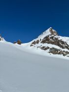 Danach sehr guter Trittschnee. Aus Risikoüberlegung vor dem Schlussgrat umgekehrt. Der Gipfel wurde sehr viel begangen, melstens am kurzen Seil.