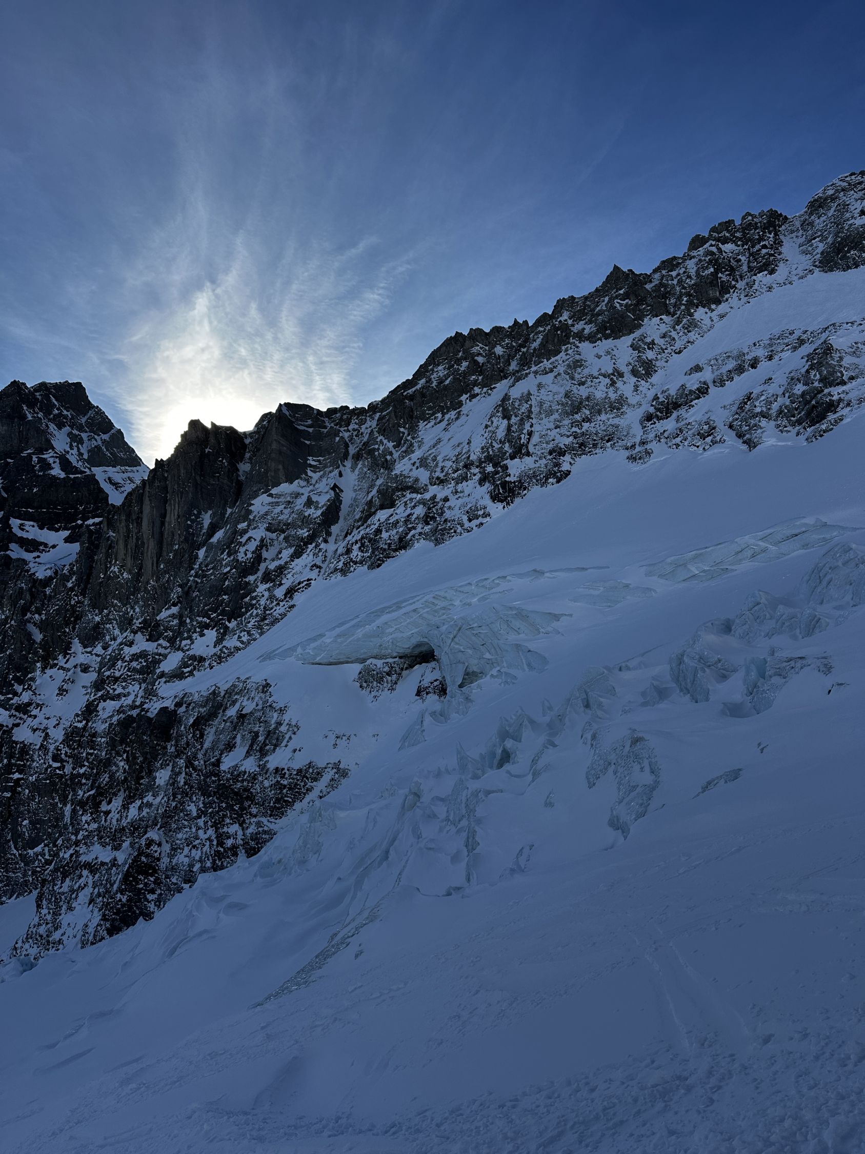 Nach dem Mittag viele Lawinenabgänge an Sonnenhängen, jedoch nicht auf der Route.