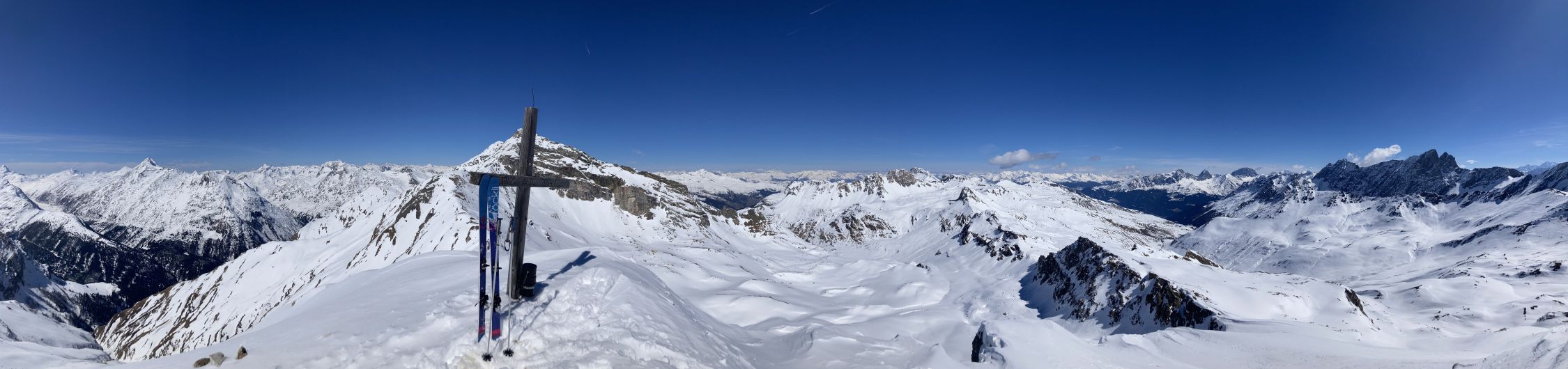 Einsamer Berg. Frühlingsschnee. Anschliessend ging ich noch auf den Piz Mez. Natürlich mit Lift abgekürzt. Strasse nach Radons wird in den nächsten Tagen geöffnet. Info Berghaus Radons.