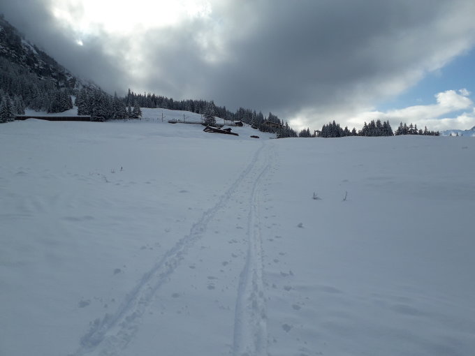Schneequalität: Durchgehend pulvrig (am Morgen). An windexponierten Stellen ist der Schnee gepresst und entsprechend nicht angenehm zum fahren. Im Tal war der Schnee nass (Nachmittag)