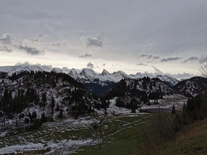 Start bei der Post Unterwasser bei starkem Pföä, Autostopp mit nettem Landwirt bis Chüeboden (merci) und dann über Chees (schlammig) zum Türlisboden. Die steile Grasflanke (35+) hoch zur Schofwis Alp ist schneefrei und trocken, auf der Alp liegt teils Schnee aber man braucht noch keine Schneeschuhe. Starker Wind am Gipfel dafür gute Sicht. Abstieg auf dem eingeschneiten Sommerweg über Tal nach Mutteli und zurück zum Gräppelenstein.