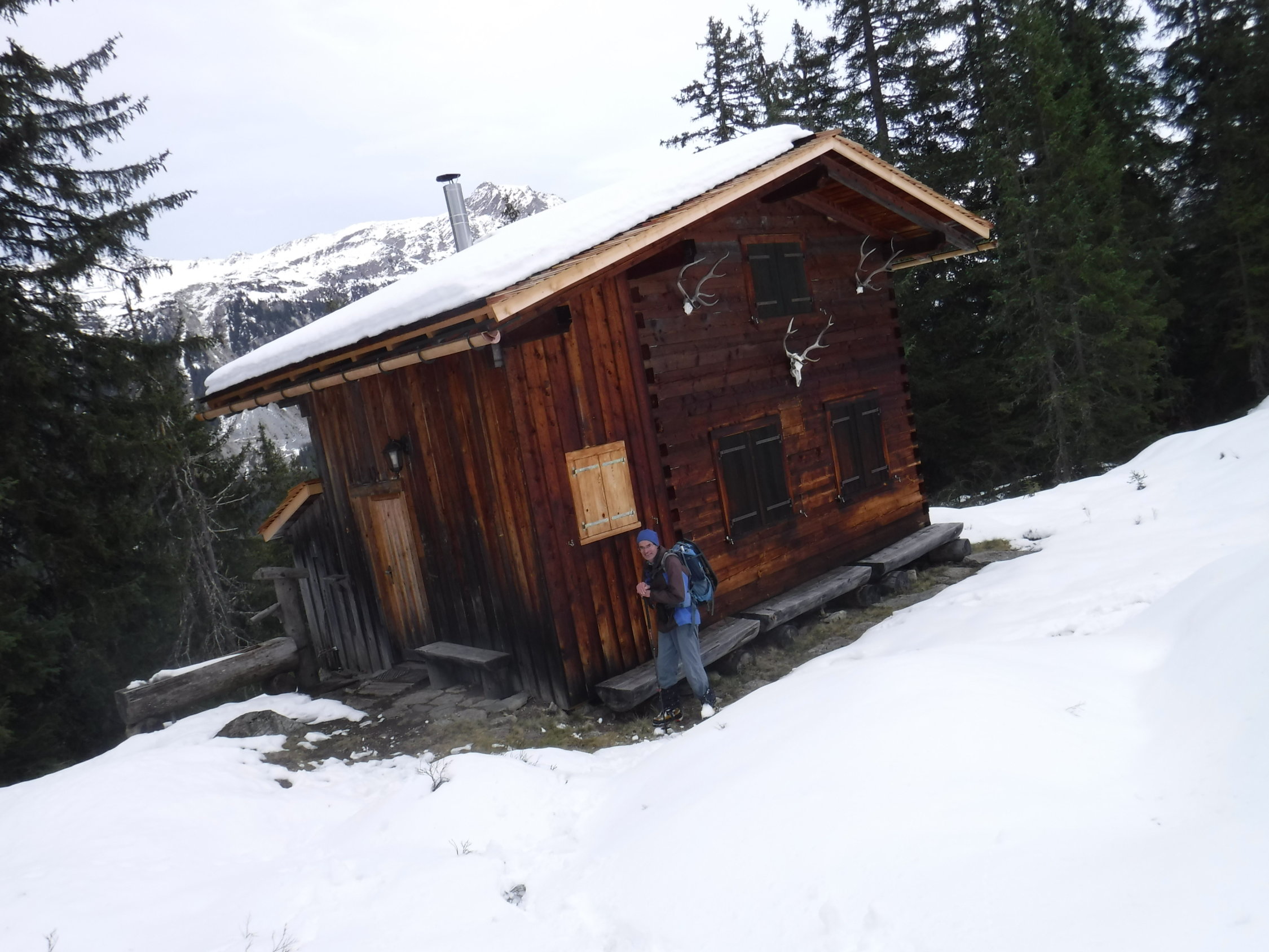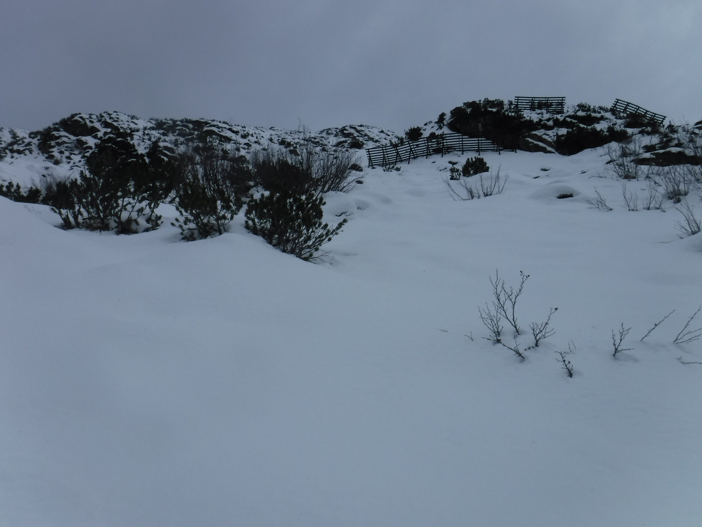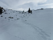 Musste alles spuren. Der Aufstieg durch den Wald nach der Bergstation war zäh, um geeignete Durchschlüpfe zu finden. Aufstieg mit Schneeschuhen erst ab der Bergstation Trominier. Im Abstieg mit SS bis zur Jagdhütte. Ab Jagdhütte war eine alte Fußspur vorhanden über den Sommerweg.