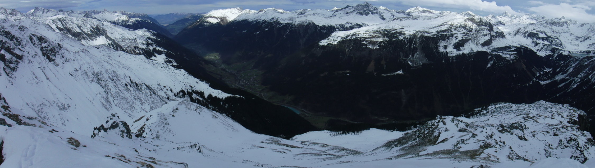 Partenen-Baad – Europatreppe 4000 – Bergstation Trominier – Innertschambreu (P 1949) – NO-Rücken – Breitfielerberg – NO-Rücken – P 1949 – P 1893 – Jagdhütte (P 1650) – alte Piste – Innerbofa – Partenen-Baad