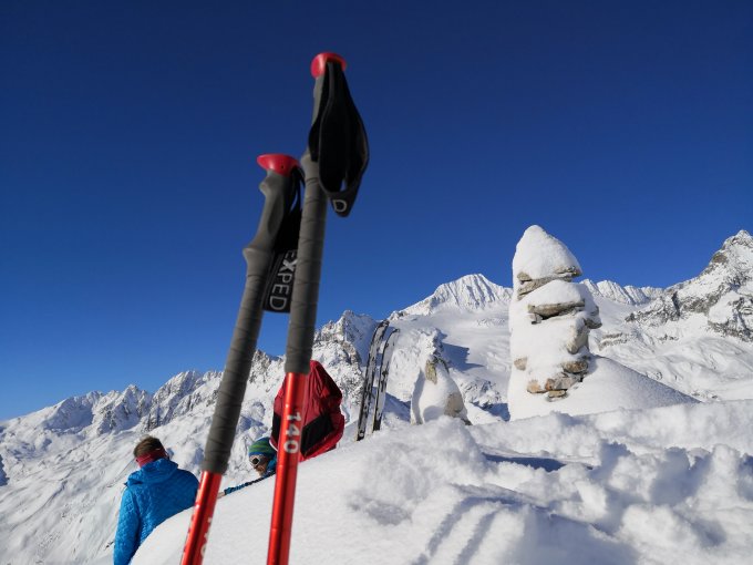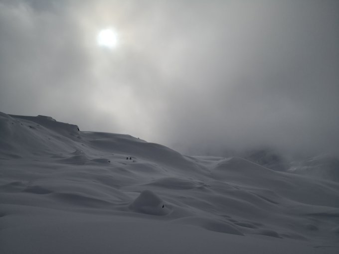 Nur gut, weil ab Hotel Galenstock zu viel Powder, Spuren mit zwei Anderen teilen können, trotzdem sehr anstrengend.