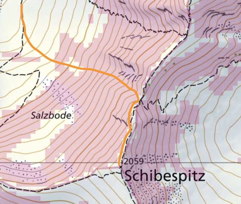 Es hat einigen Schnee gegeben im Gebiet. Spontane Nachmittagstour. Abfahrt in SW Richtung via dem ersten Couloir nach dem Bunker. Wie immer auch bei wenig Schnee eine gute Wahl, weil der Untergrund mehrheitlich aus Grass besteht. Der Schnee war super.
